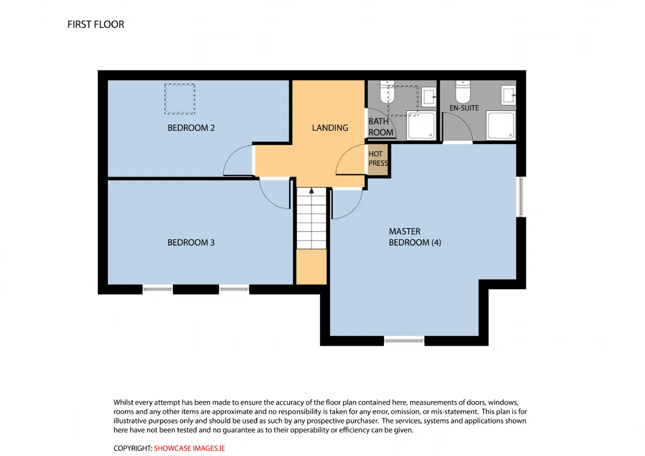 Landing 3.30m x 3.30m at widest point, solid wood flooring.