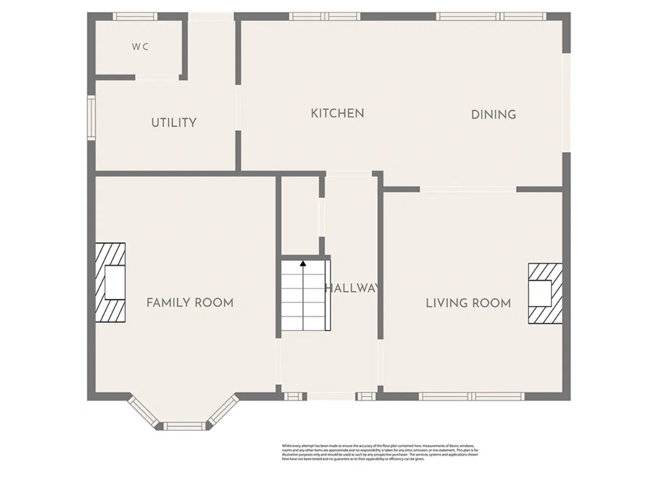 Living Room 3.9m x 3.5m front-facing room with bay window, timber flooring, open fire in cast iron and timber surround