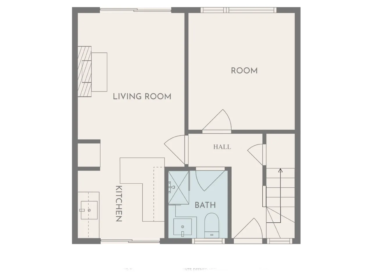 Kitchen Dining Living Room 2.97m x 6.39m Sliding door to rear and to front, fireplace, Lino flooring, in dining area, tiled in the kitchen area, coving, ceiling rose, fitted waist and eye level units, hot press incorporated