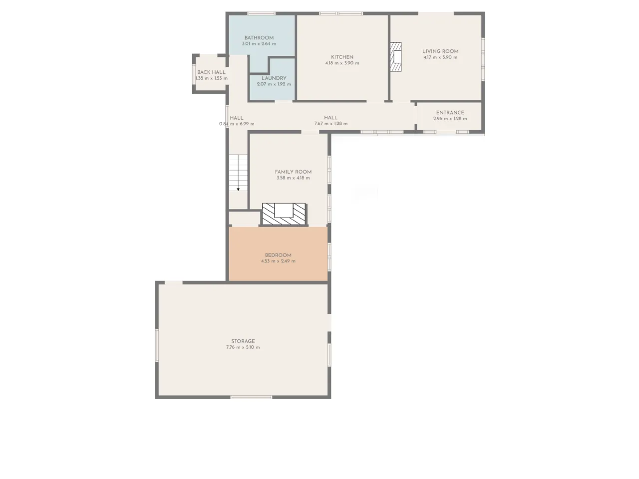 Garage 7.7m x 4.67m Concrete floor, dual access