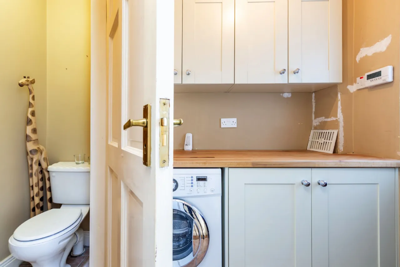 Cloakroom 1.0m x 1.4m With w.c, w.h.b, tile flooring