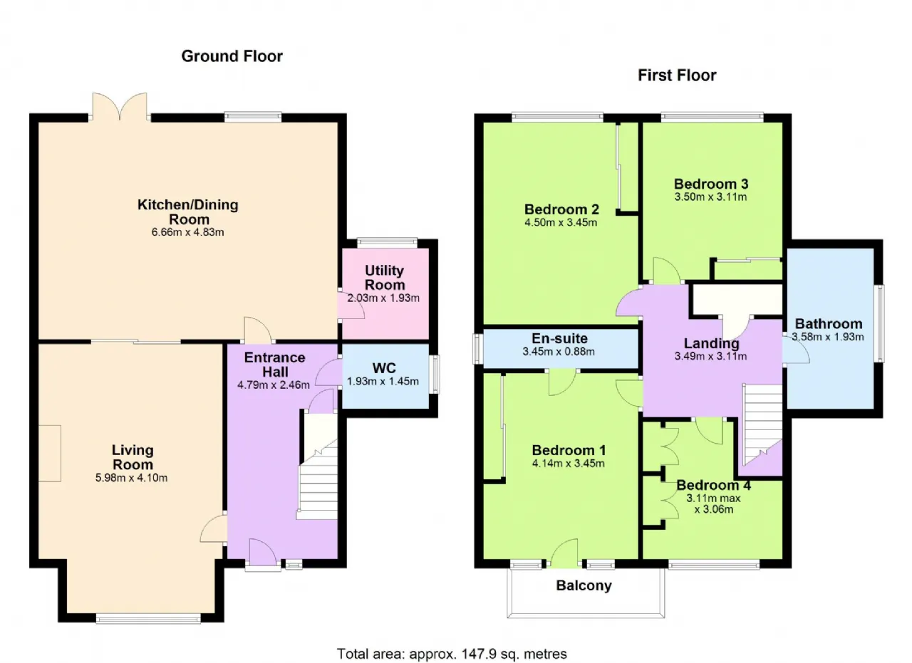 Bedroom 2 4.50m x 3.45m Large double bedroom with laminate wood flooring and picturesque countryside views to the rear. Fitted wardrobes with mirrored doors offer ample storage for clothing.