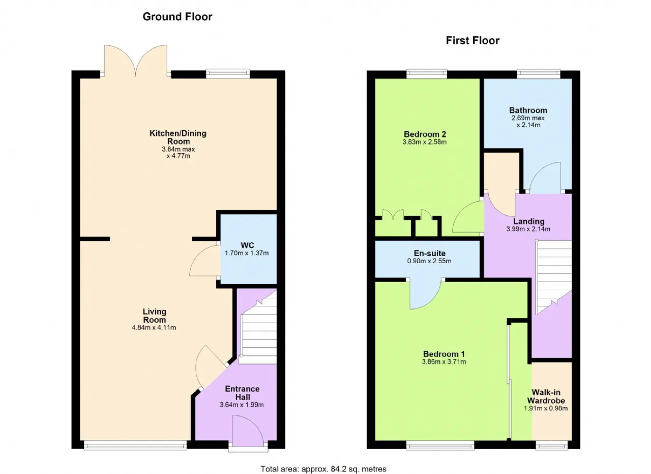 WC 1.70m x 1.37m Conveniently located off the living area and featuring a wc and whb.
