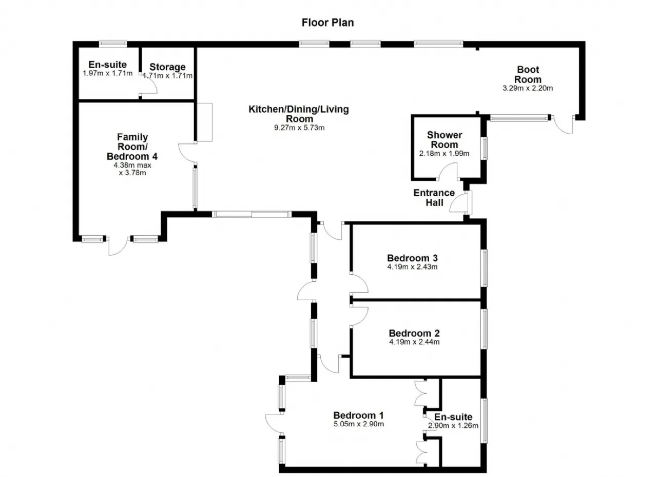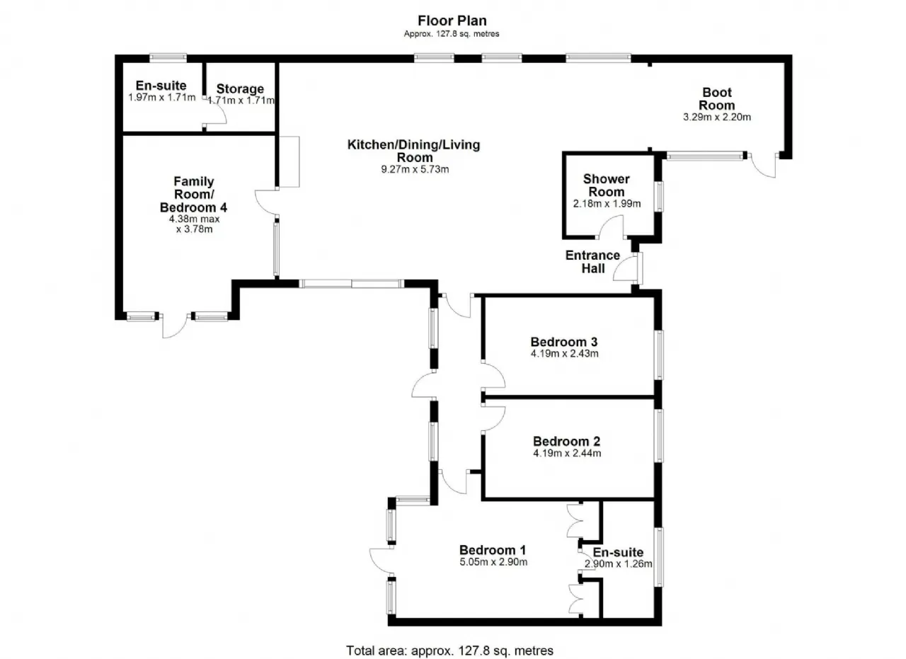 Bedroom 4/Family Room 4.38m x 3.78m Located off the open plan living area this is a spacious double room currently in use as a family room with built in shelving and engineered wood flooring. The floor to ceiling windows allow for plenty of natural light and the high ceiling creates a wonderful sense of space.