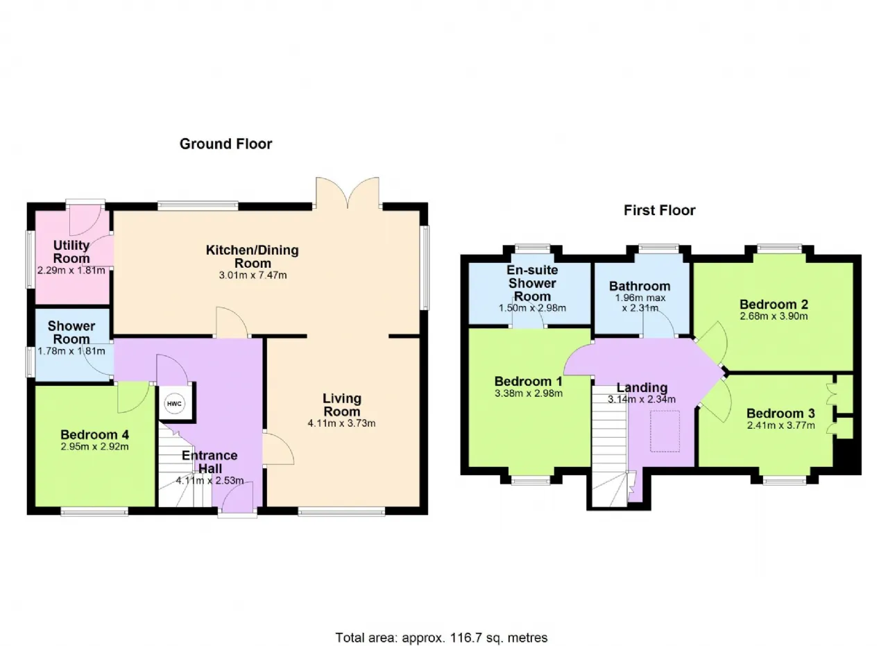 Shower Room 1.81m x 1.78m Located on the ground floor, this is a spacious shower room featuring an electric shower, tiled flooring, wc and whb.