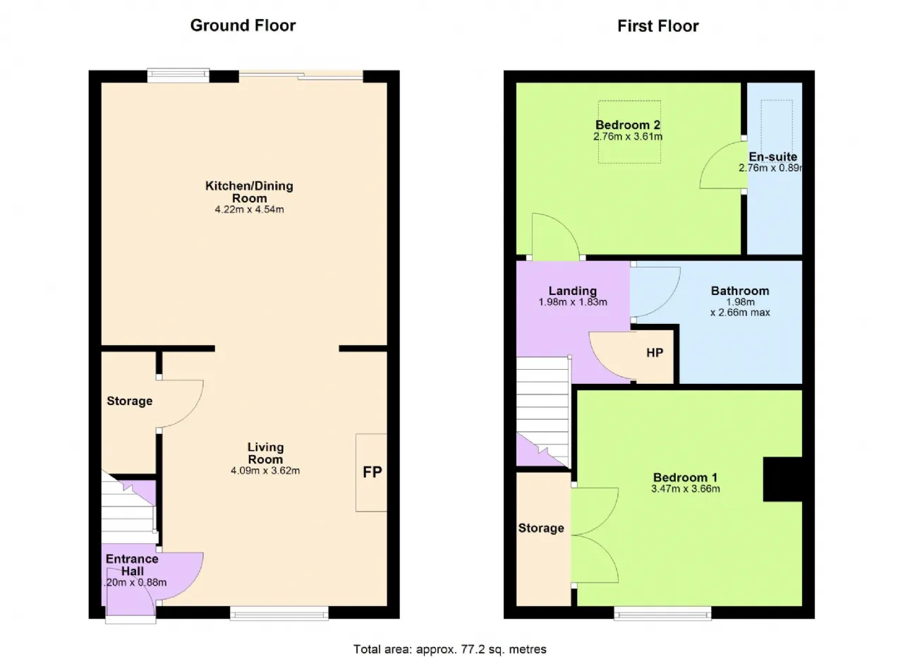 Bedroom 2 3.61m x 2.76m Bedroom two located to the front with built in storage.