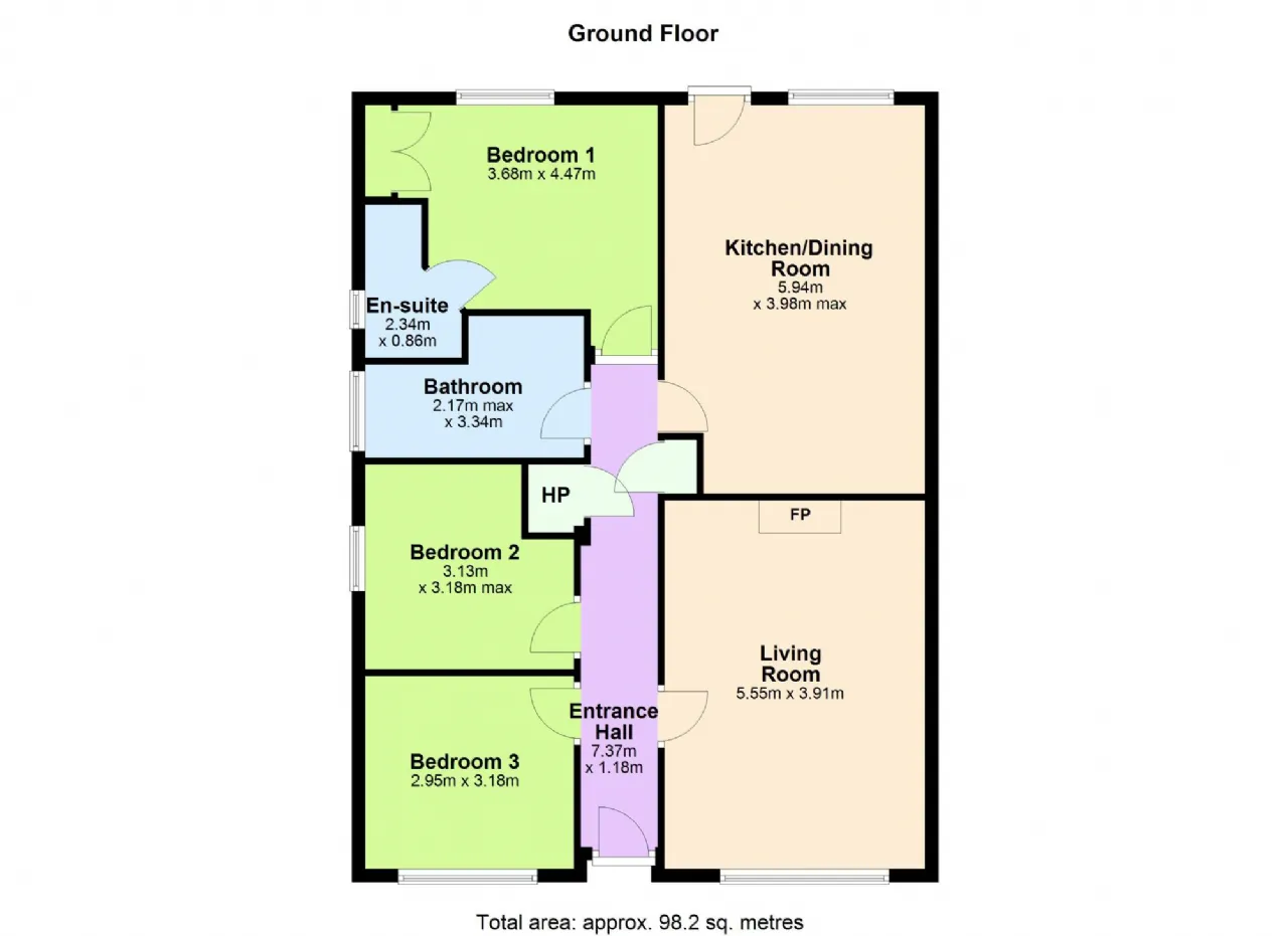 Living Room 5.55m x 3.91m Spacious, bright room featuring a polished granite fireplace with timber surround, & granite hearth under a timber mantle, laminate flooring & TV point.