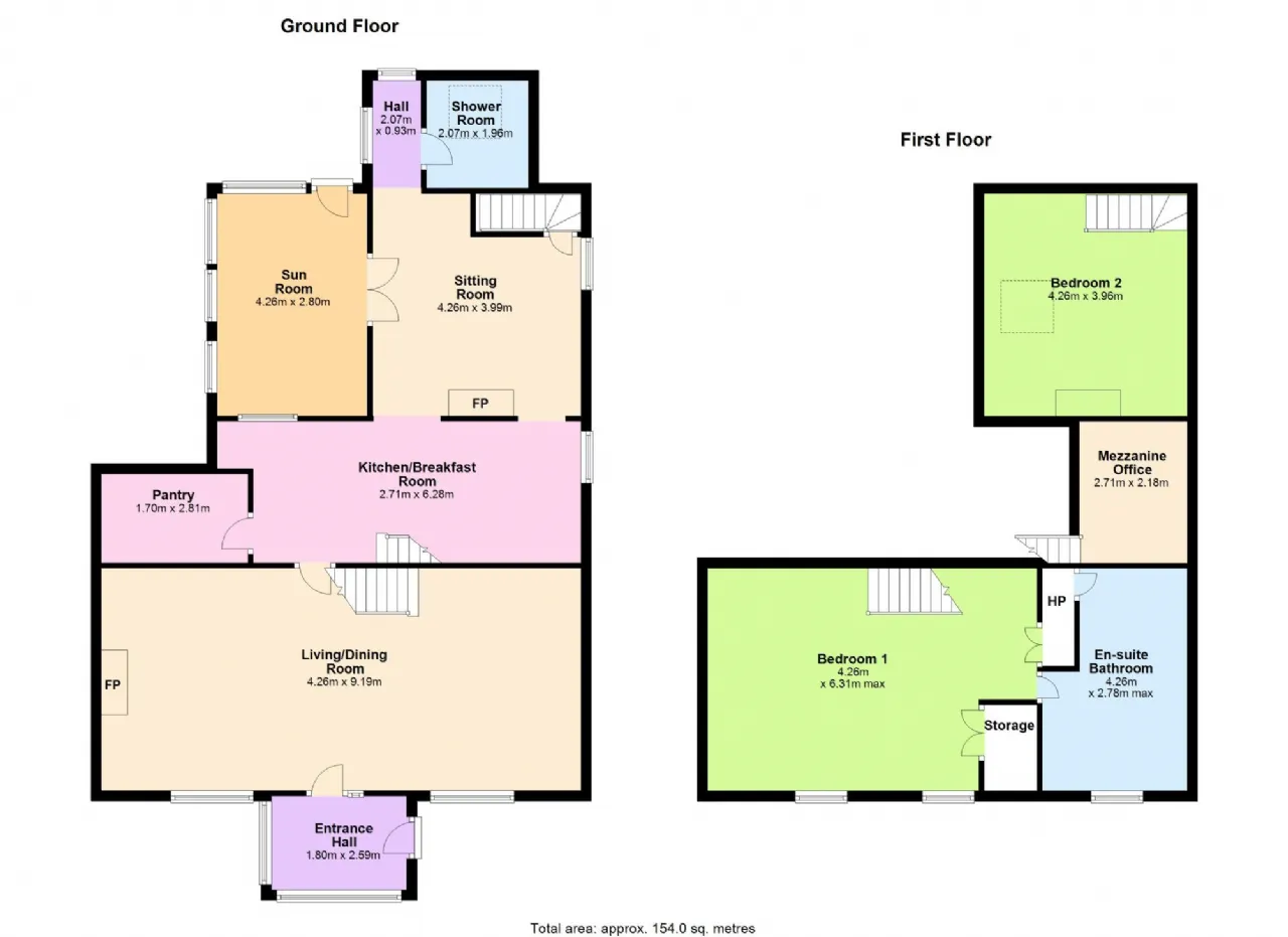Sitting Room 4.26m x 3.99m The second reception or ‘snug’ area has flagstone floors, a solid fuel Stanley stove, Scandinavian double glazed timber windows which continue throughout the house. Double doors open to the conservatory/sun room.