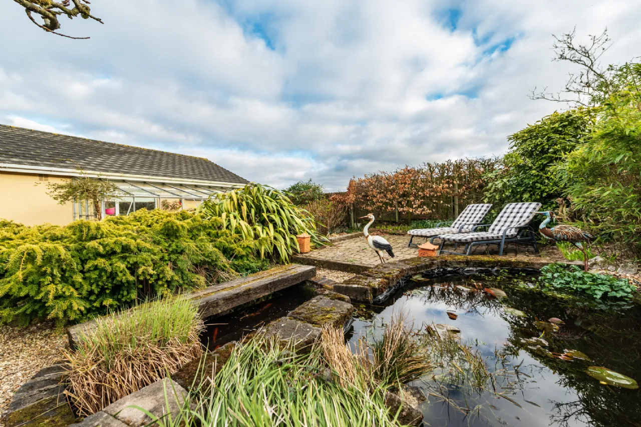 Gardens The front garden is in lawn, surrounded by copper and green beech hedging, and with a large bed to centre packed with shrubs. To the front of the house, granite steps lead to a large patio by the front door, the perfect place for a morning coffee enjoying sweeping views. A colourful Virginia creeper wraps itself around the railings. The rear garden is a delight. Three patios offer distinct relaxation spaces, including one by the soothing water feature. Gravel paths weave through railway sleeper-edged beds, packed with a rich variety of trees and shrubs. The garden boasts a vibrant plant palette, including hydrangeas, hemlock, laurel, apple trees, creeping yew, bamboo, and cordyline, plus herb and vegetable beds which are perfect for “growing your own”.
