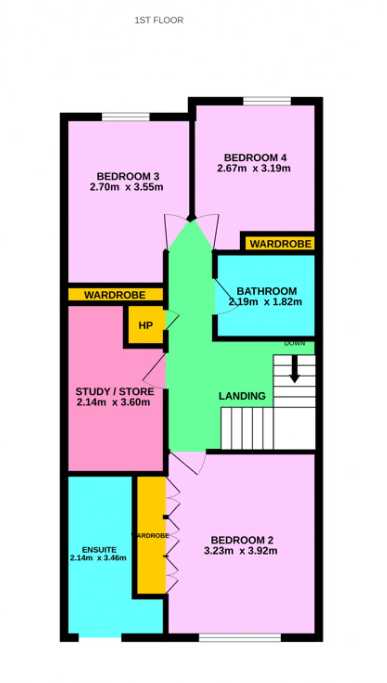 Bedroom 4 2.67m x 3.19m Double bedroom to the rear. Built-in floor to ceiling wardrobes with mirrored insets. Carpeted flooring and central lighting.