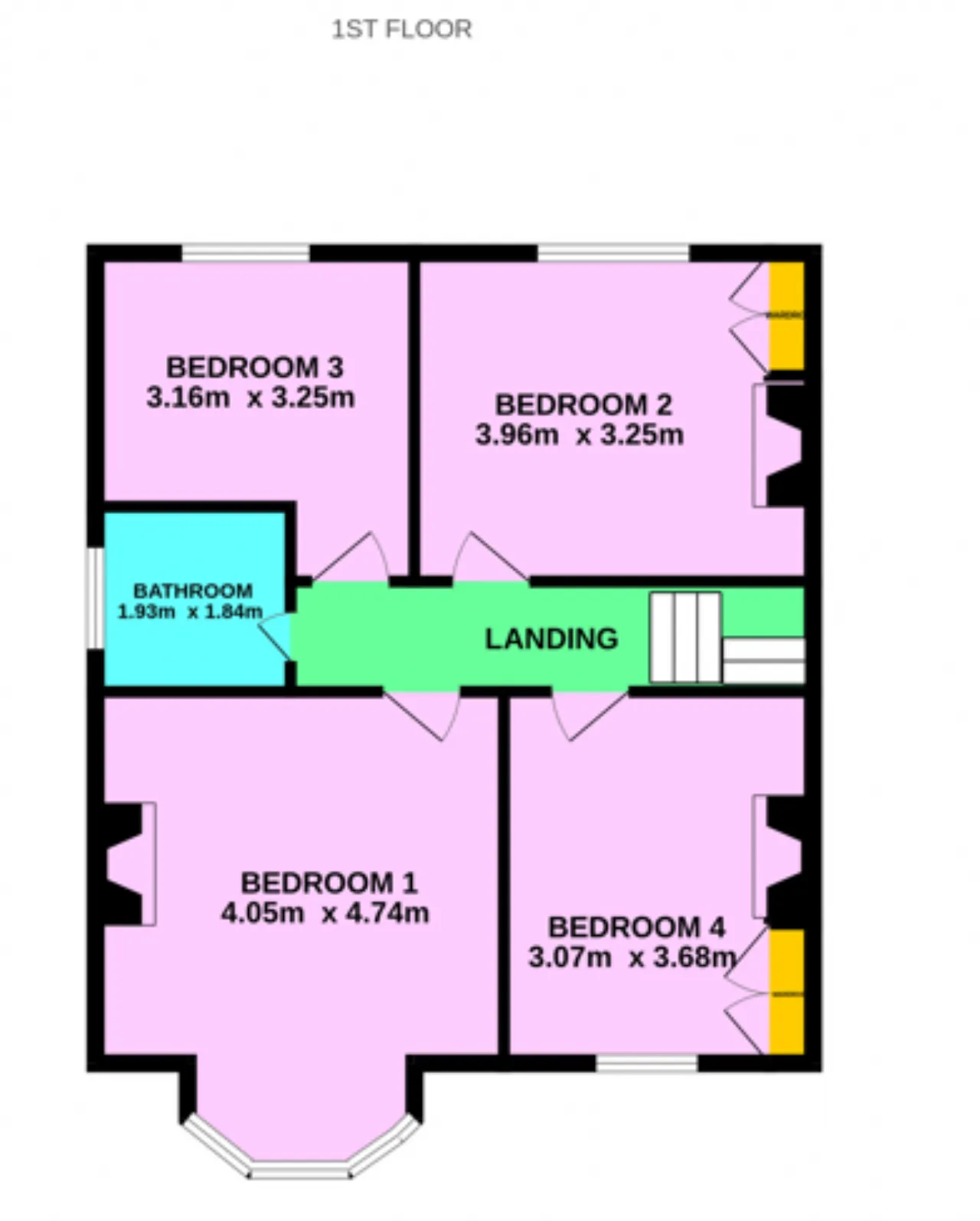 Bedroom 1 4.05m x 4.74m Double bedroom to the front. Feature cast iron fireplace with slate hearth. Wardrobe. Bay window with views of the park. Ceiling coving and centre rose. Solid timber flooring.