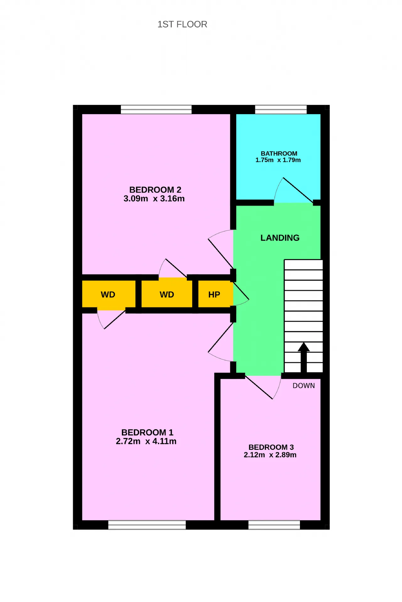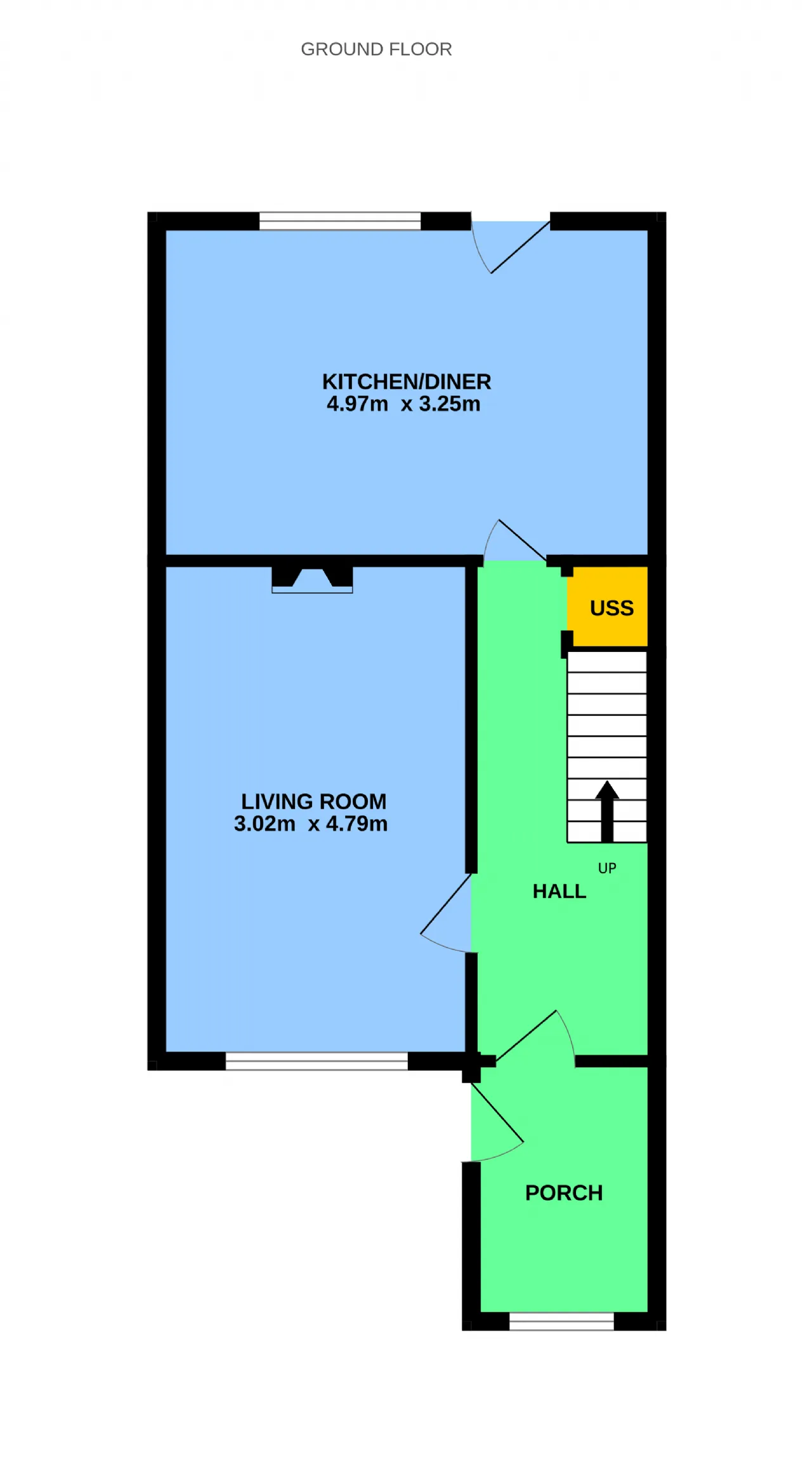Internally, the accommodation is scheduled over two floors measuring 85 sq. m approx. Entering the property through a tiled front porch, the entrance hall comprises understairs storage and laminate wood flooring which is a recurring theme in the living room that sits to the left of the hallway. Here there is decorative ceiling plasterwork on display along with an attractive stone fireplace. The open plan kitchen/diner spans the width of the property to the rear incorporating tiled flooring, timber cabinetry, and a range of appliances. Upstairs, on the first floor there are three bedrooms, two double and a generous single. Both double bedrooms include built-in wardrobes and a fully tiled wet room off the landing completes the layout.