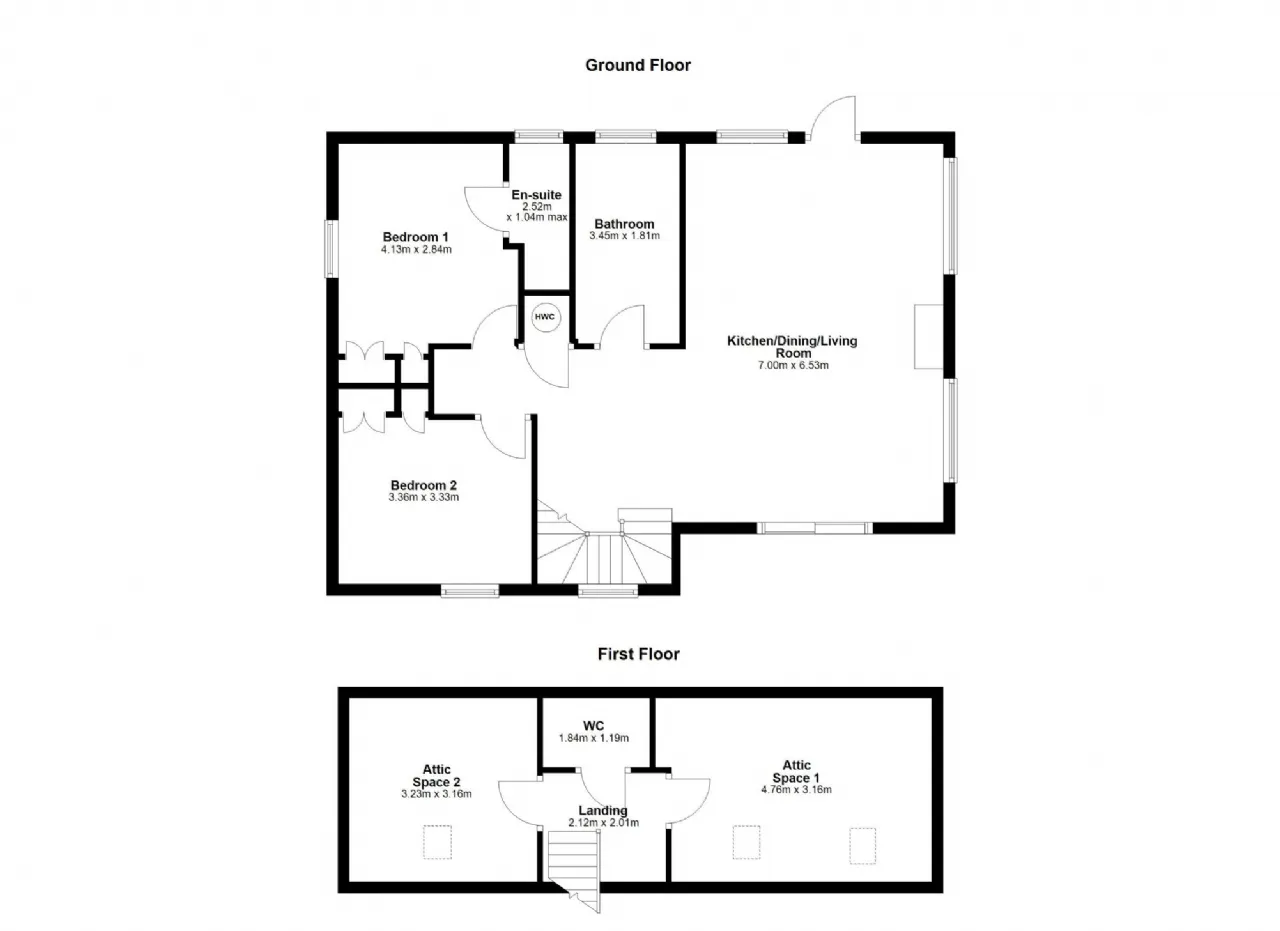 The ground floor also features two well-appointed bedrooms, including a master bedroom with its own private en-suite, as well as a separate family bathroom. Upstairs, two charming attic rooms provide additional accommodation.