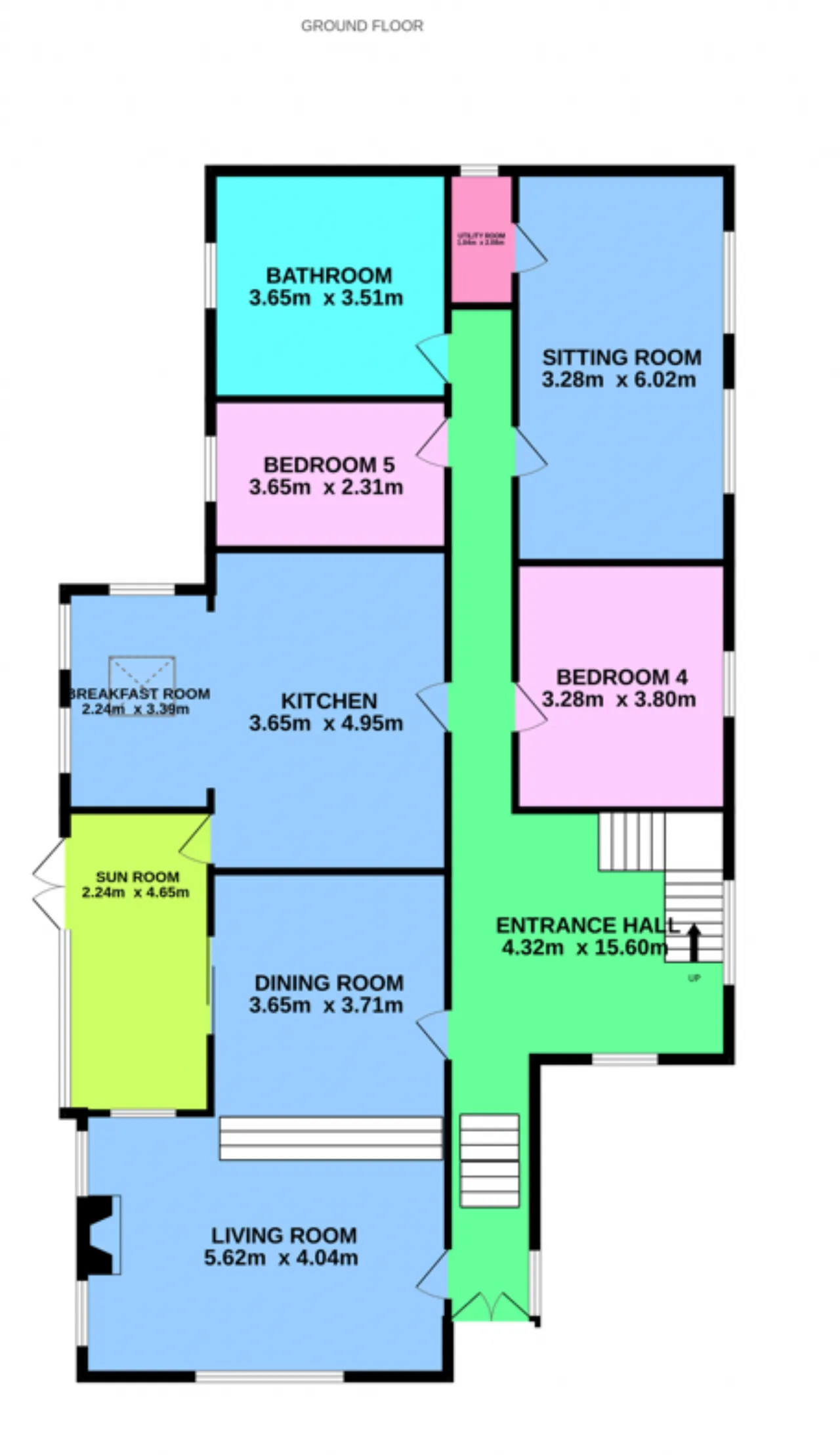 Entrance Hallway 15.60m x 4.32m Dual aspect with views of front and side gardens. Decorative radiator cover. Timber flooring and central lighting.