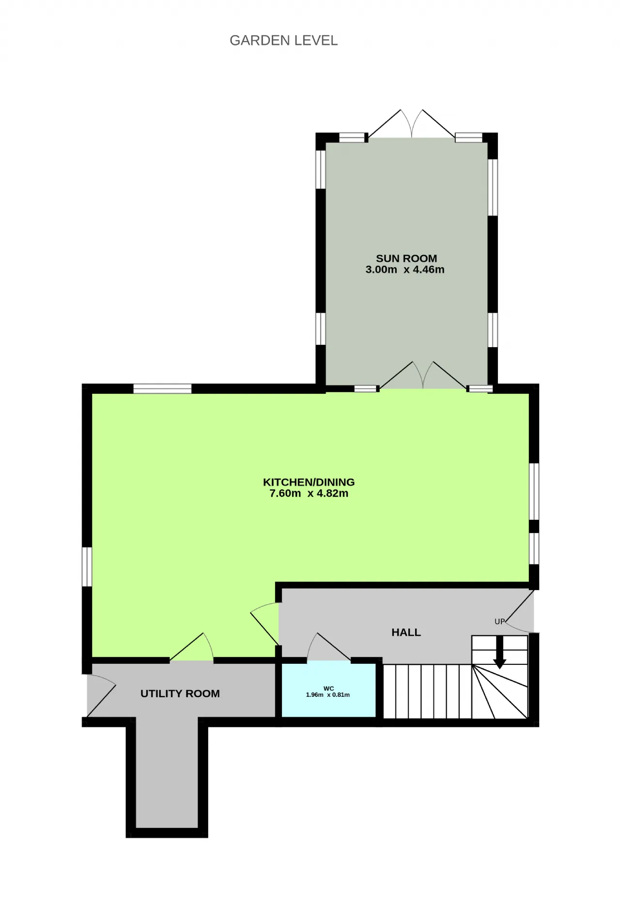 Sun Room 3.00m x 4.46m Triple aspect reception space with tiled floor and 2 skylights allowing light to drench this reception which leads through French doors to the back garden. Gas stove, recessed downlighting and dimmer switch.