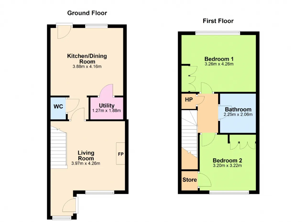 Bedroom 1 3.26m x 4.26m Spacious double located at the rear of the house with wood flooring and fitted wardrobes.