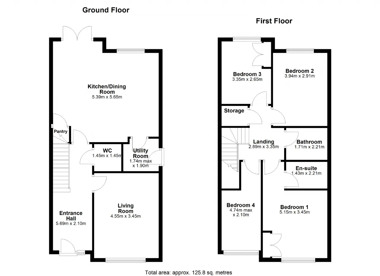 Bedroom 1 5.15m x 3.45m The master bedroom, positioned at the front of the house, is a generously sized and tranquil retreat. Luxurious carpet flooring adds warmth and comfort and fitted wardrobes are seamlessly integrated.