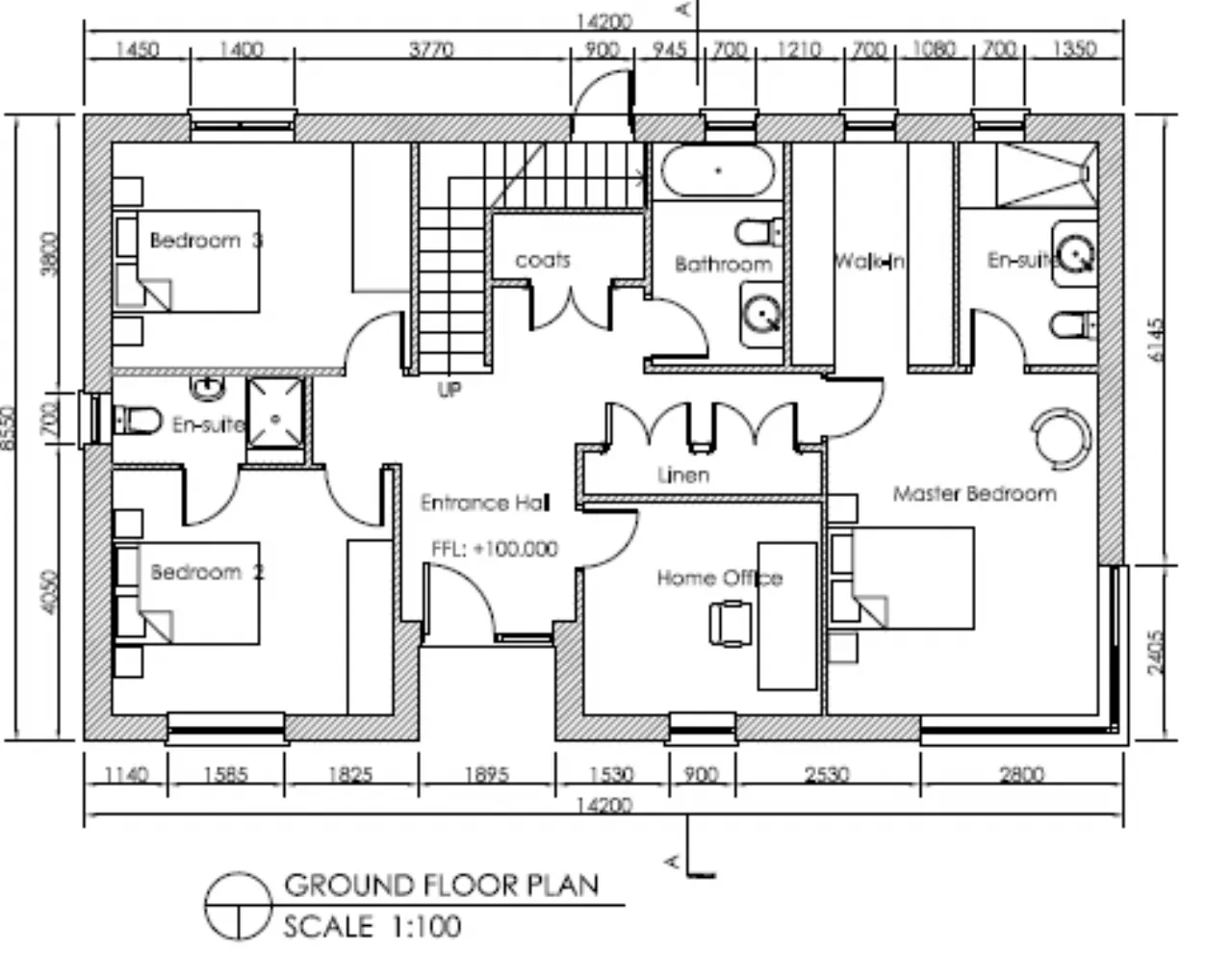 Designed by well known local architect Richard Rainey, the planning consists of a 188 sq.m/ 2,030 sq. ft 2 storey residence. On ground floor level, the plans consist of a large entrance hall, Master bedroom with ensuite and walk in wardrobe, two large double bedrooms, one with ensuite, a home office and family bathroom. On first floor level, plans include a large open plan Kitchen/ Dining/ Lounge area, a living room and a utility room all with access to a large terrace. Thoughtfully designed and carefully laid out, all the rooms in the house were purposely designed to face the water, each with large windows to take in the vista as well as flooding the house with natural light. Planning reference 21/04554.