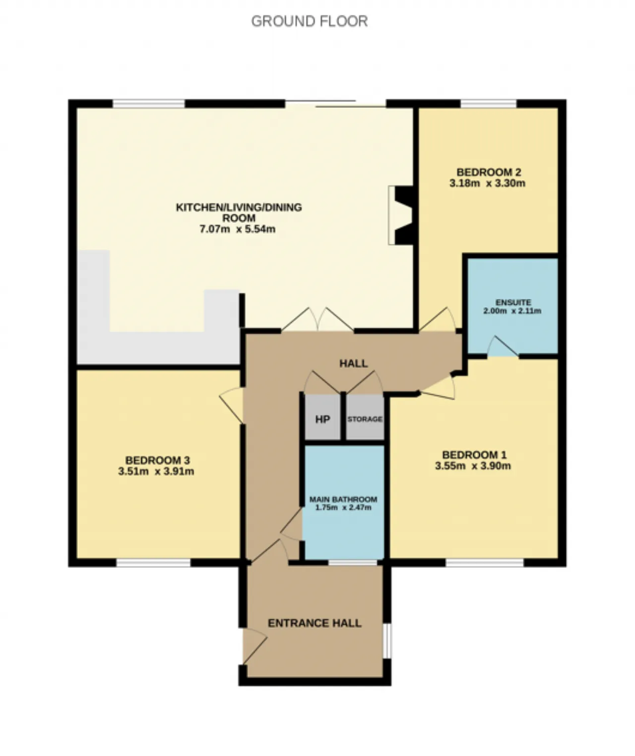 Accommodation in brief comprises of an entrance hall, three generous double bedrooms (one with ensuite), main bathroom and a kitchen/living/dining area.