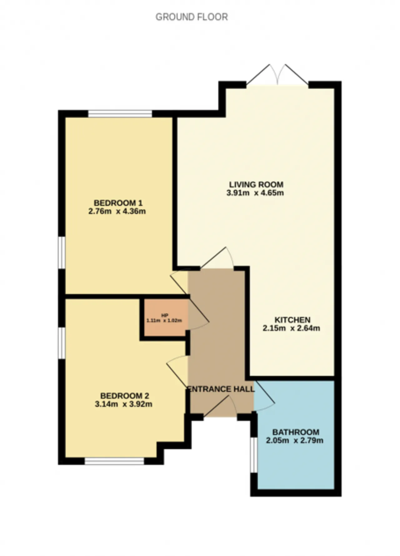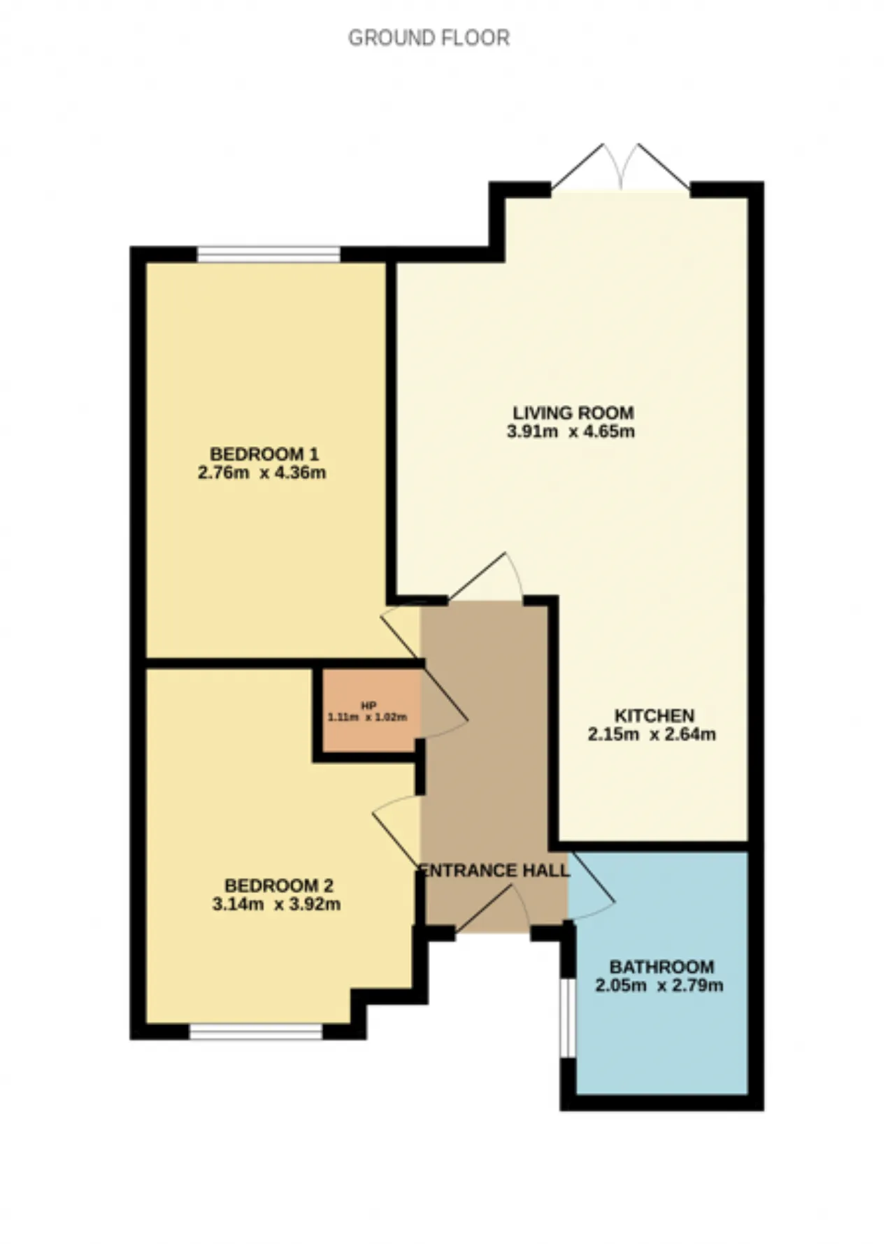 Bedroom 2 3.9m x 3.1m Generous double bedroom to the front that enjoys a twin aspect. The floor is tiled with a free-standing wardrobe (included).