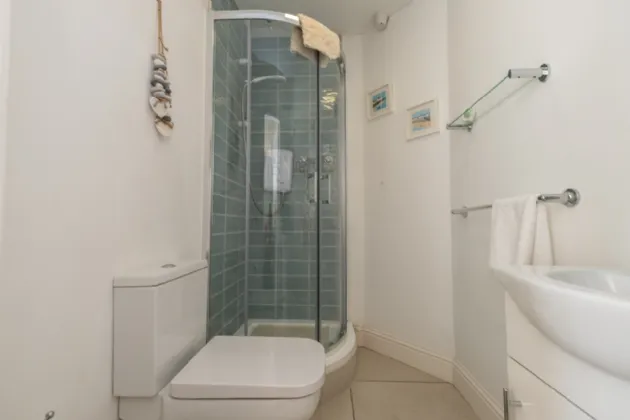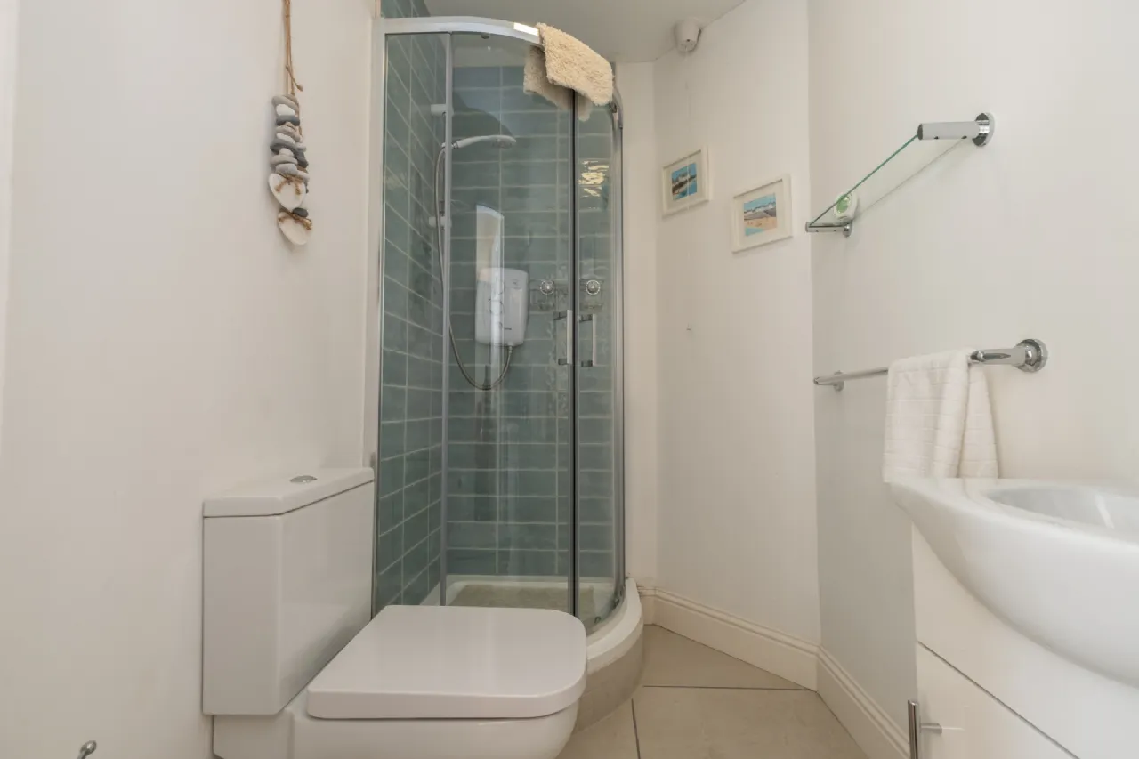 En-Suite 1.905m x 1.379m Tiled Flooring. Tiled around shower.