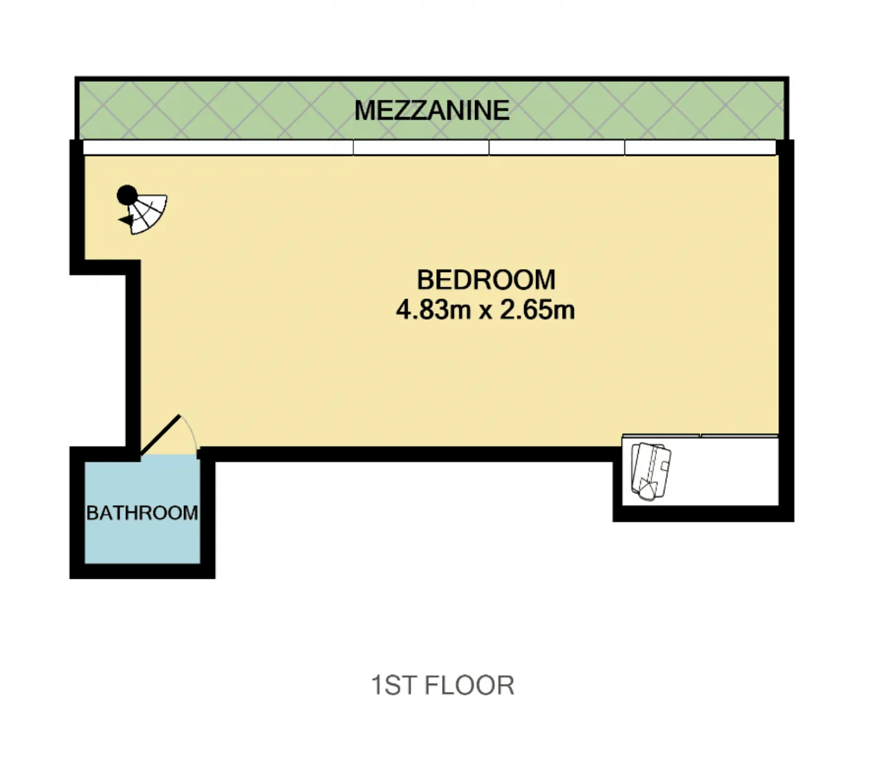 Bedroom 4.83m x 2.65m Open plan bedroom on the mezzanine level with an ensuite bathroom and built in wardrobes.