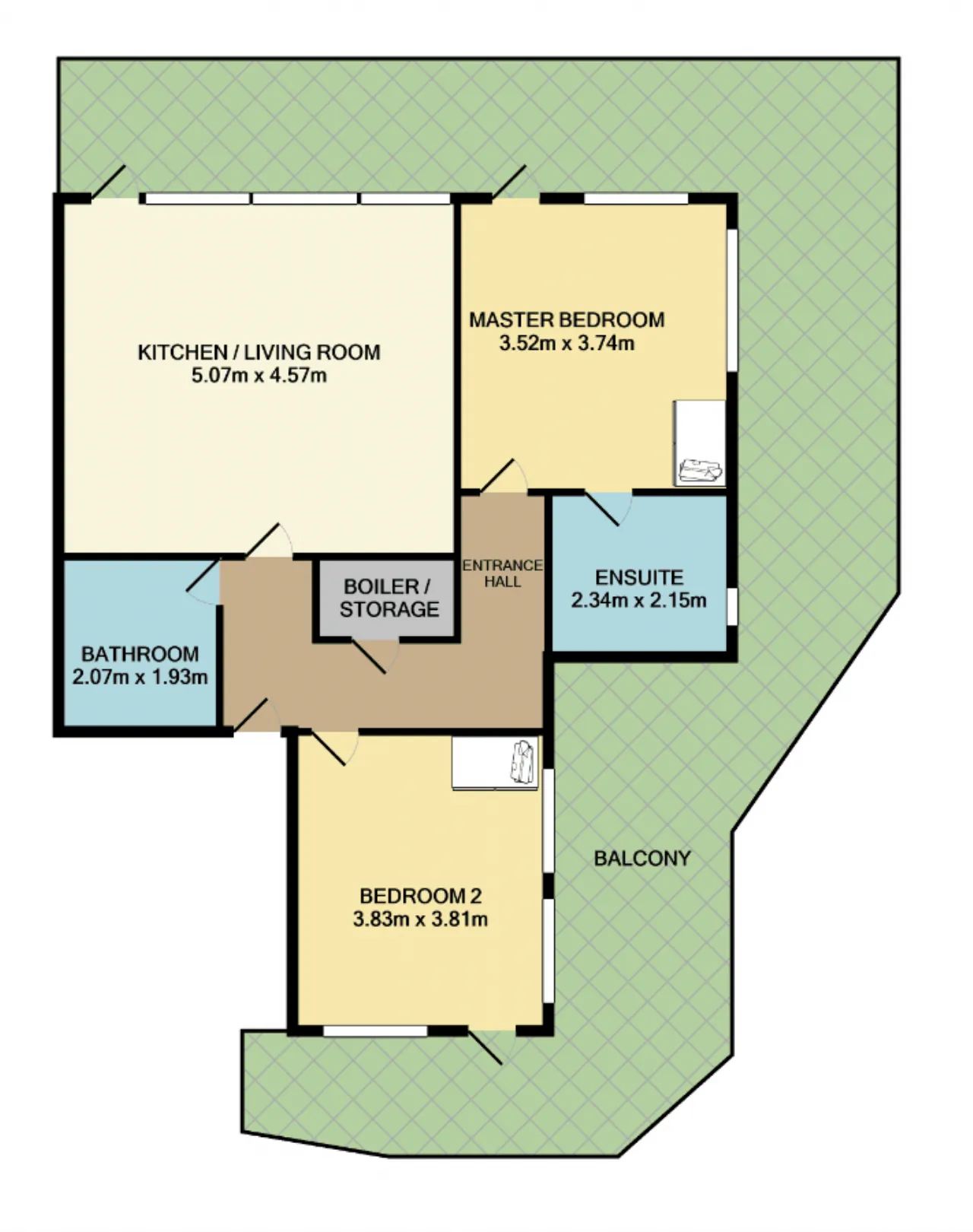 The light filled accommodation is excellently designed with modern comfortable living in mind. No. 30 has many special features including wooden flooring throughout, floor to ceiling windows in the living/dining room and both bedrooms. The accommodation briefly comprises; entrance hallway, there are 2 double bedrooms (one of which is en-suite) both with built in wardrobes and an open plan living/dining room which is awash with natural light, the kitchen lies just off this, and a family bathroom completes the accommodation. The apartment also boasts a large decked wrap around balcony that is a focal point of the property and enjoys uninterrupted city skyline views.