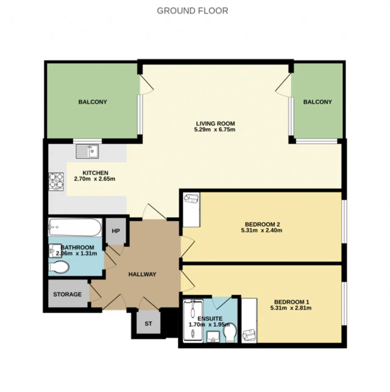 Bedroom 2 5.30 x 2.42 An impressive sized, second double bedroom with hardwood flooring and fitted wardrobe.