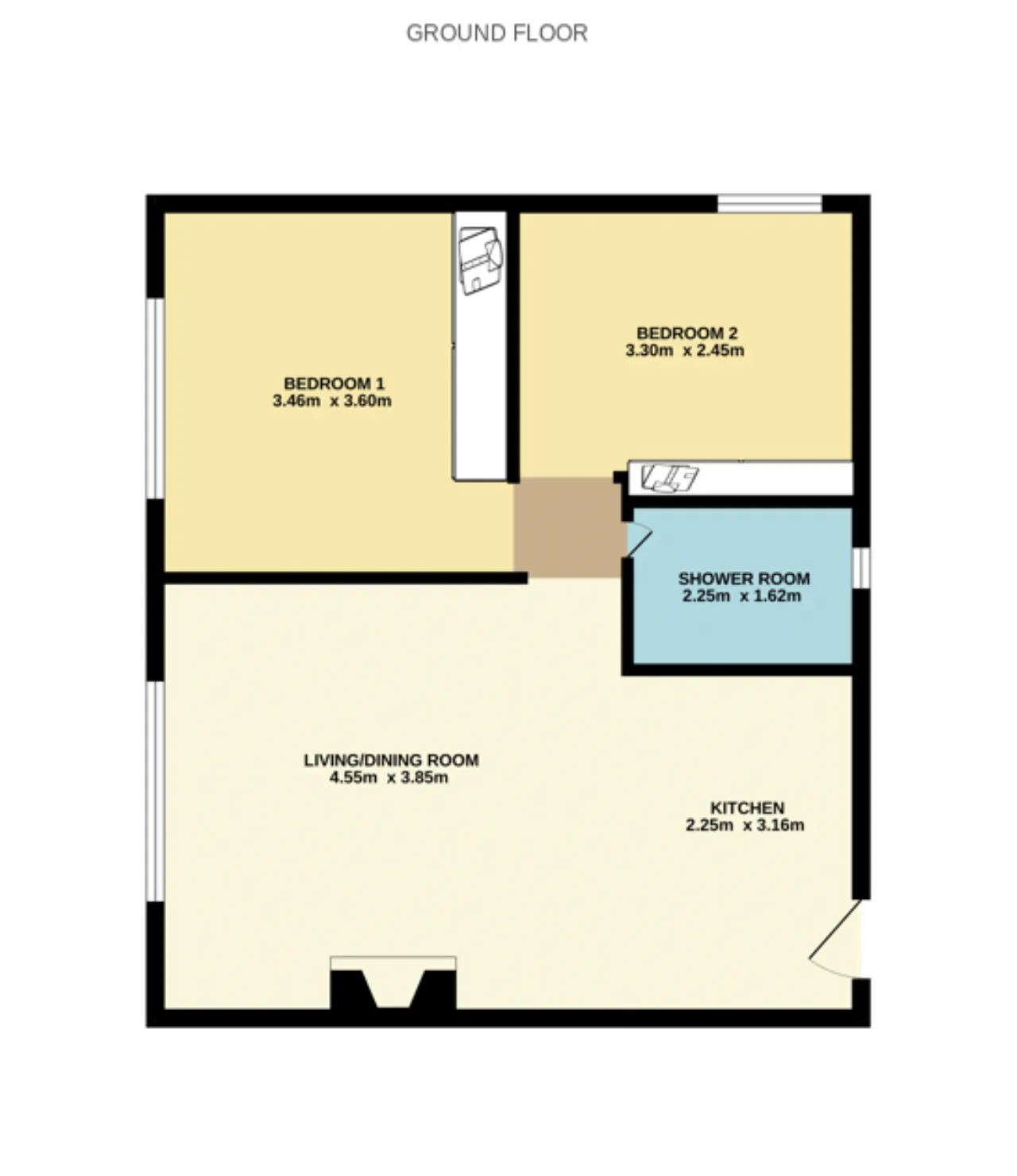 Bedroom 2 3.30m x 2.45m Single bedroom with wardrobe and location of hot press and gas boiler