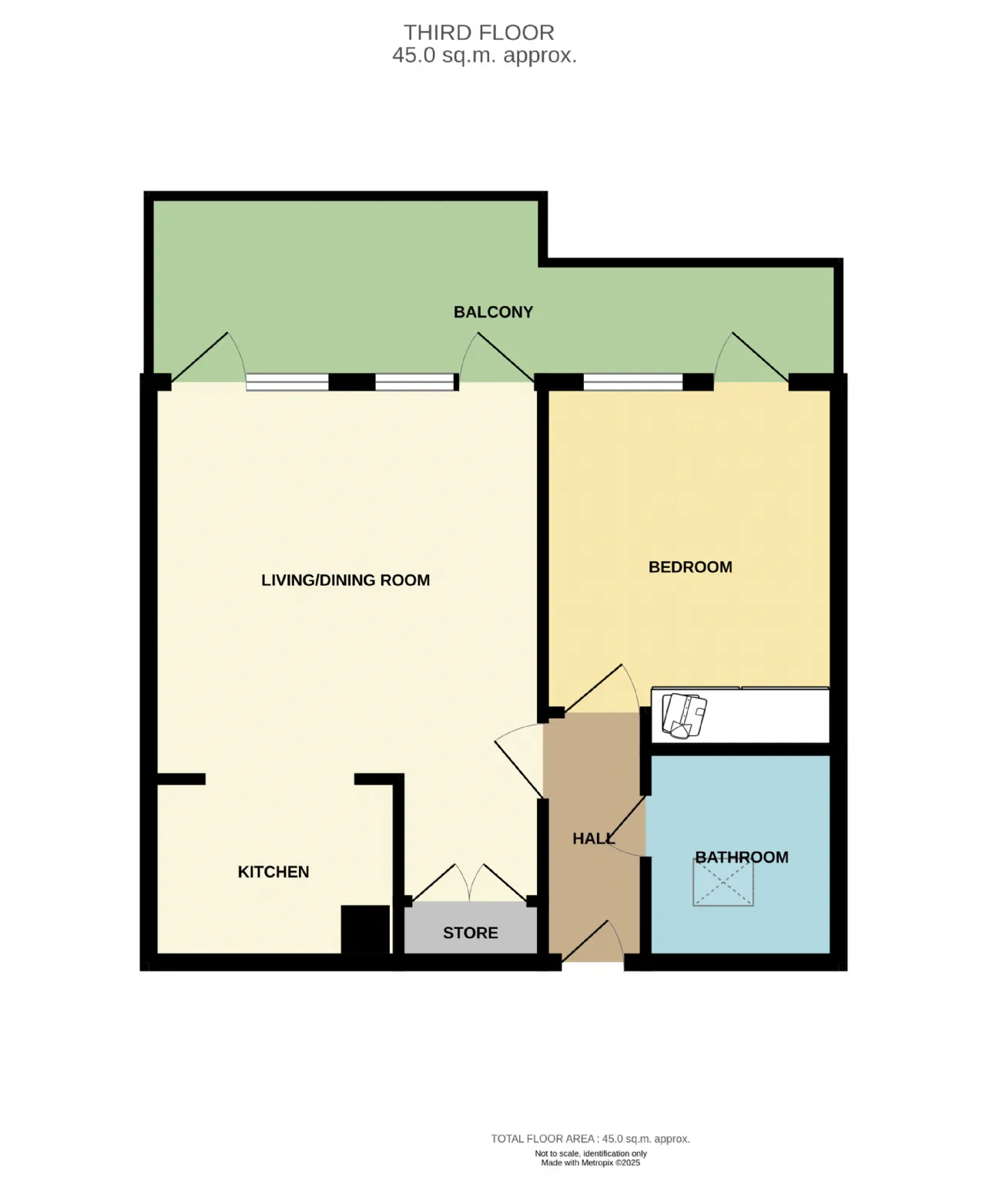 Accommodation briefly comprises; entrance hall, open plan living / dining with kitchen to one side and 2 glass doors and windows on the other side out to a sunny south west facing private balcony that runs the full width of the apartment across living area and bedroom area. There is a spacious double bedroom with plenty of wardrobes, the bedroom also opens out to the balcony. Plus, there is a full bathroom with natural light via a skylight.