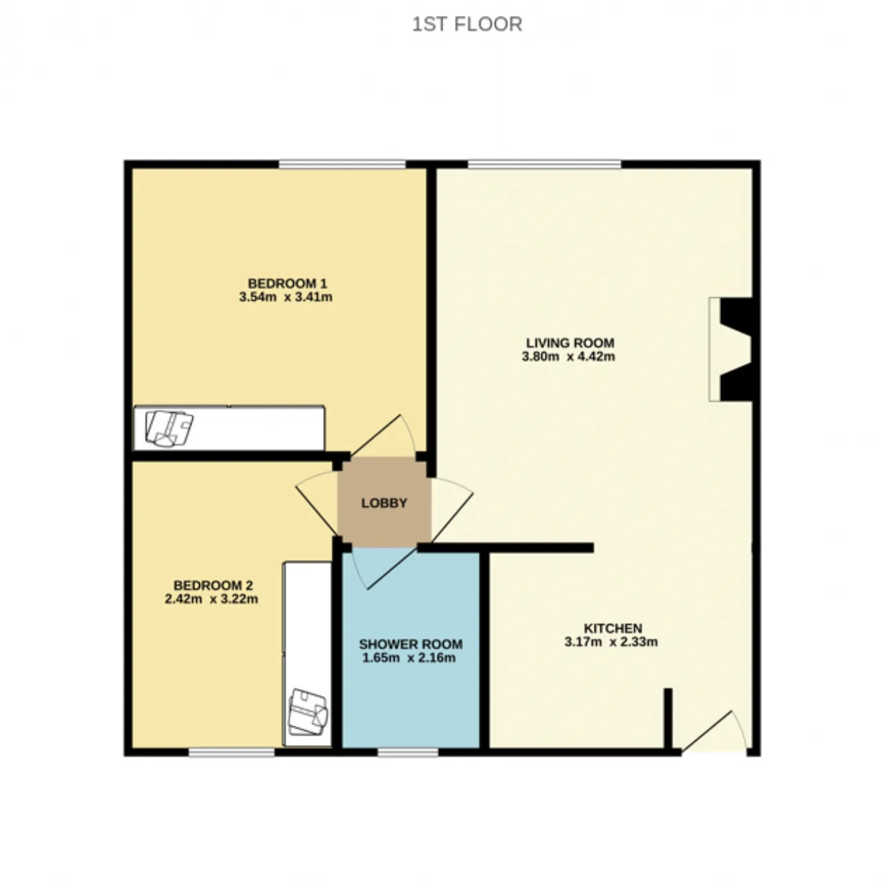 On entering via the stairs to the first floor, the apartment is to the left facing out on to the car park to the rear. There is an open plan kitchen/living room which has a working fireplace making this home lovely and cosy. From here there are two bedrooms both with built in wardrobes and a shower room with an electric shower. Gas fired central heating and double glazed windows with well insulated walls give this apartment an energy rating of C3.