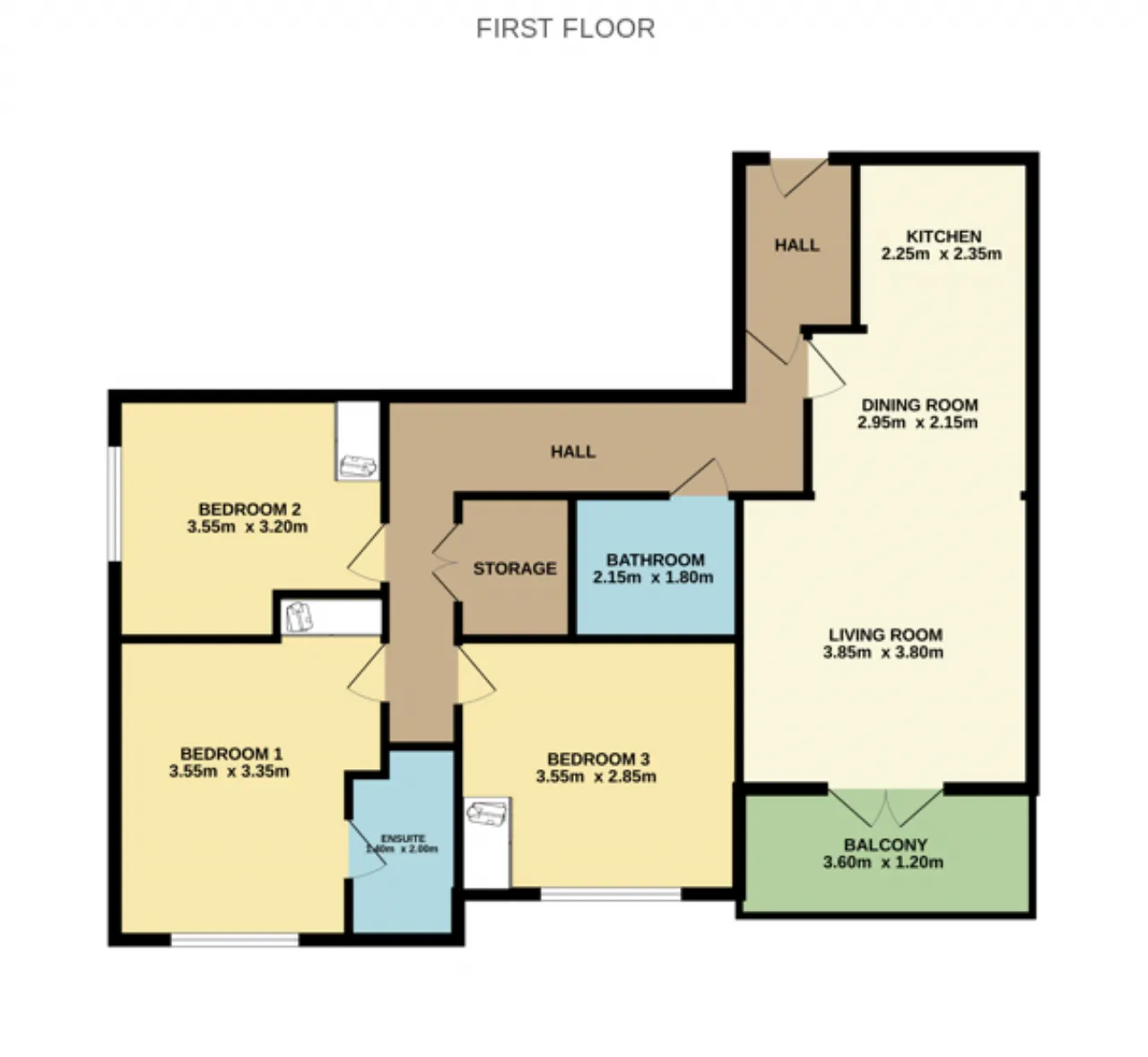 Bedroom 3 3.55m x 2.85m Timber effect tiled floor.