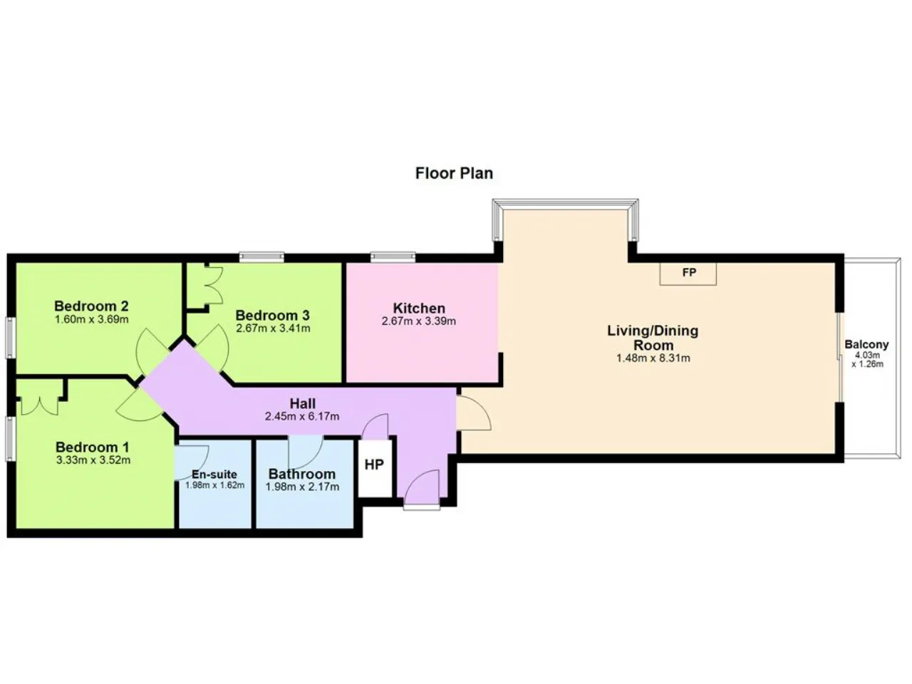 Three double bedrooms.