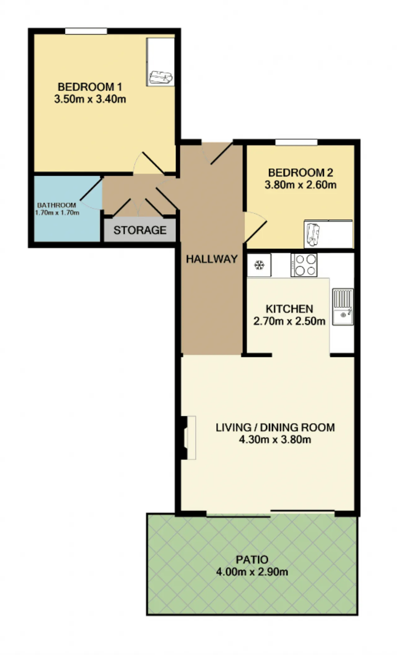Bedroom 2 3.80m x 2.60m Double bedroom with laminate floor, built in wardrobes and window to the front.