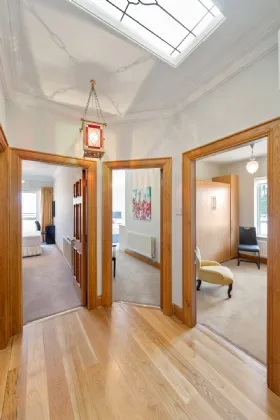 There is a large newly refurbished family bathroom with large walk-in waterfall shower, with dual shower head. The apartment has a unique storage offering with both a separate cloakroom and hot press with built in shelving, and further storage in the large attic space easily accessed through pull downstairs.