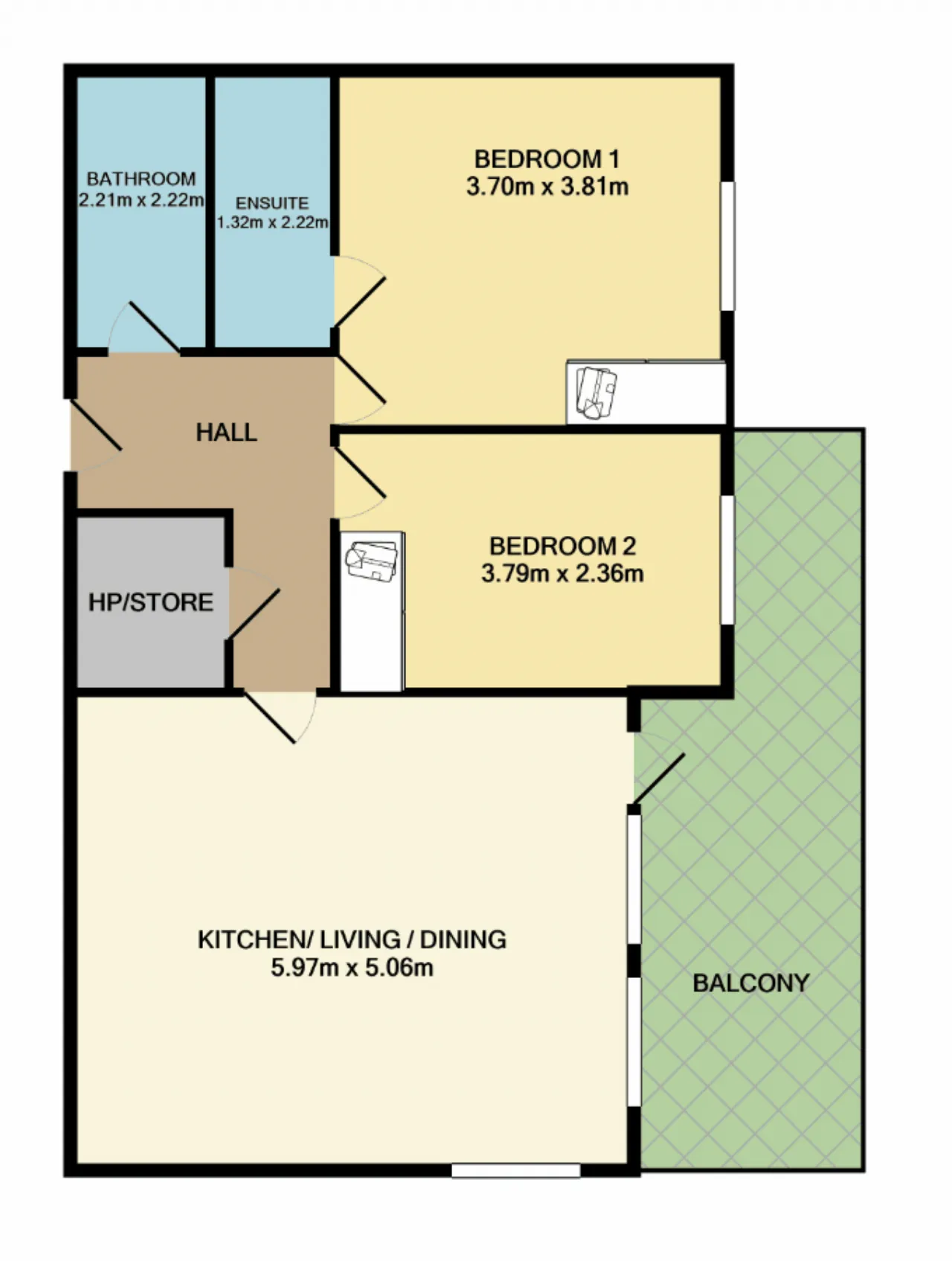Kitchen / Living / Dining 5.97m x 5.06m Solid dark Oak flooring, large window overlooking the gardens with door to balcony Good range of floor and wall units, all appliances are integrated, granite work top and breakfast bar, tiled foor