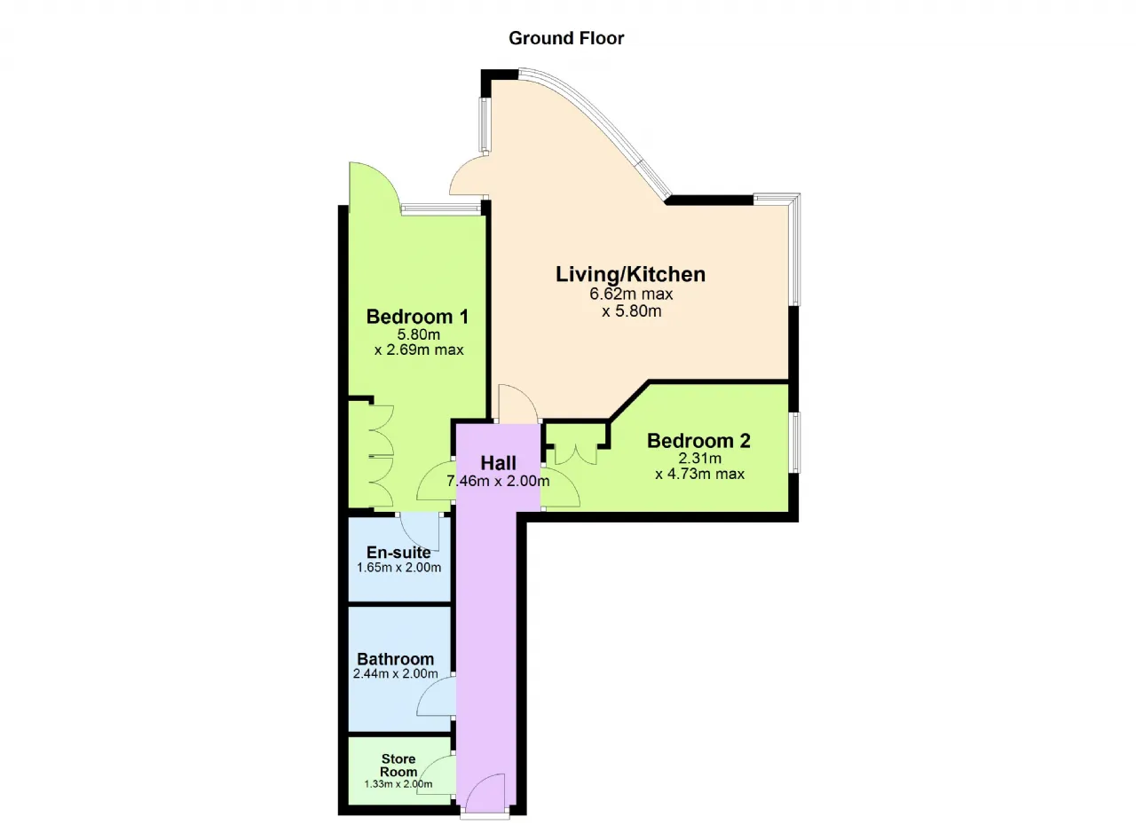 Ensuite 1.65m x 2.00m Shower Room ensuite, fully tiled with shower cubicle, wash hand basin and wc.