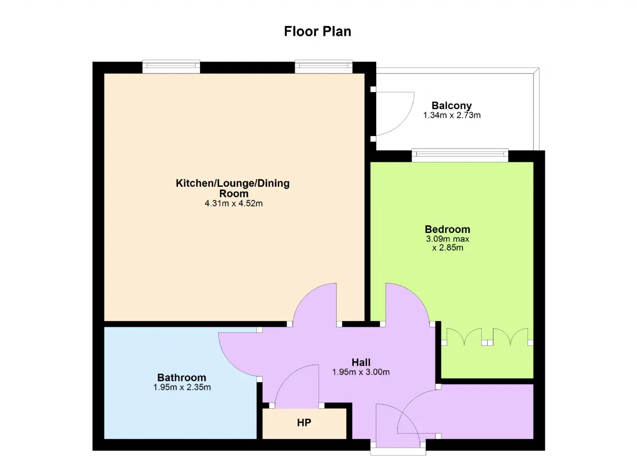 Balcony 1.34m x 2.73m South facing balcony with room for table and two chairs.