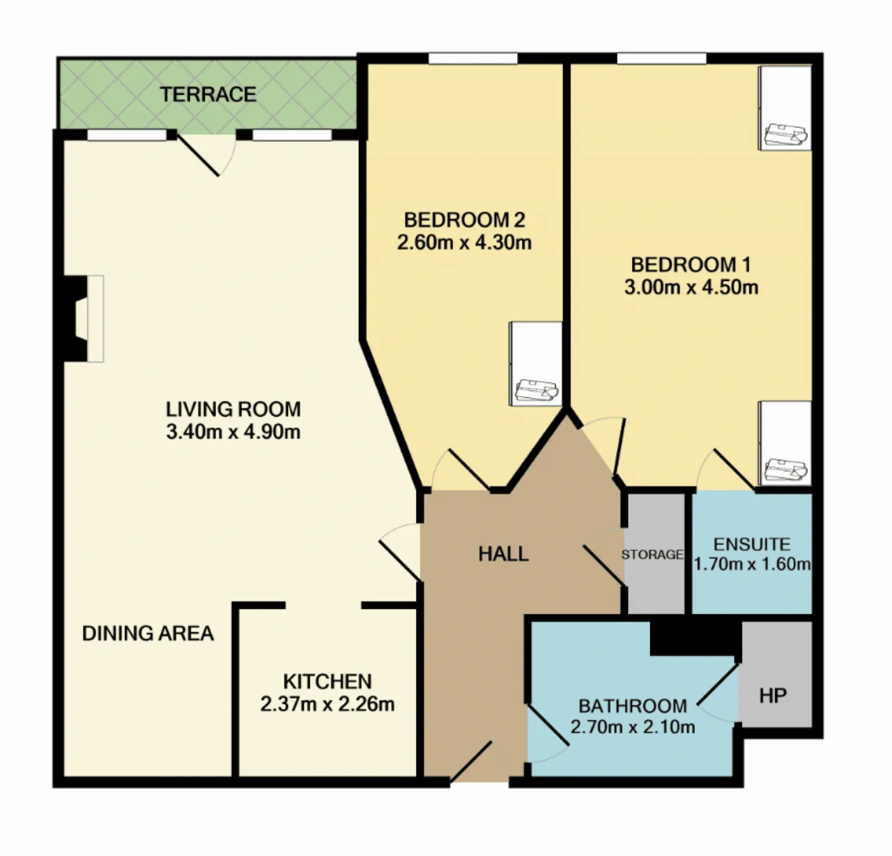 Bedroom 2 2.60m x 4.30m Laminate wood flooring, built in wardrobes