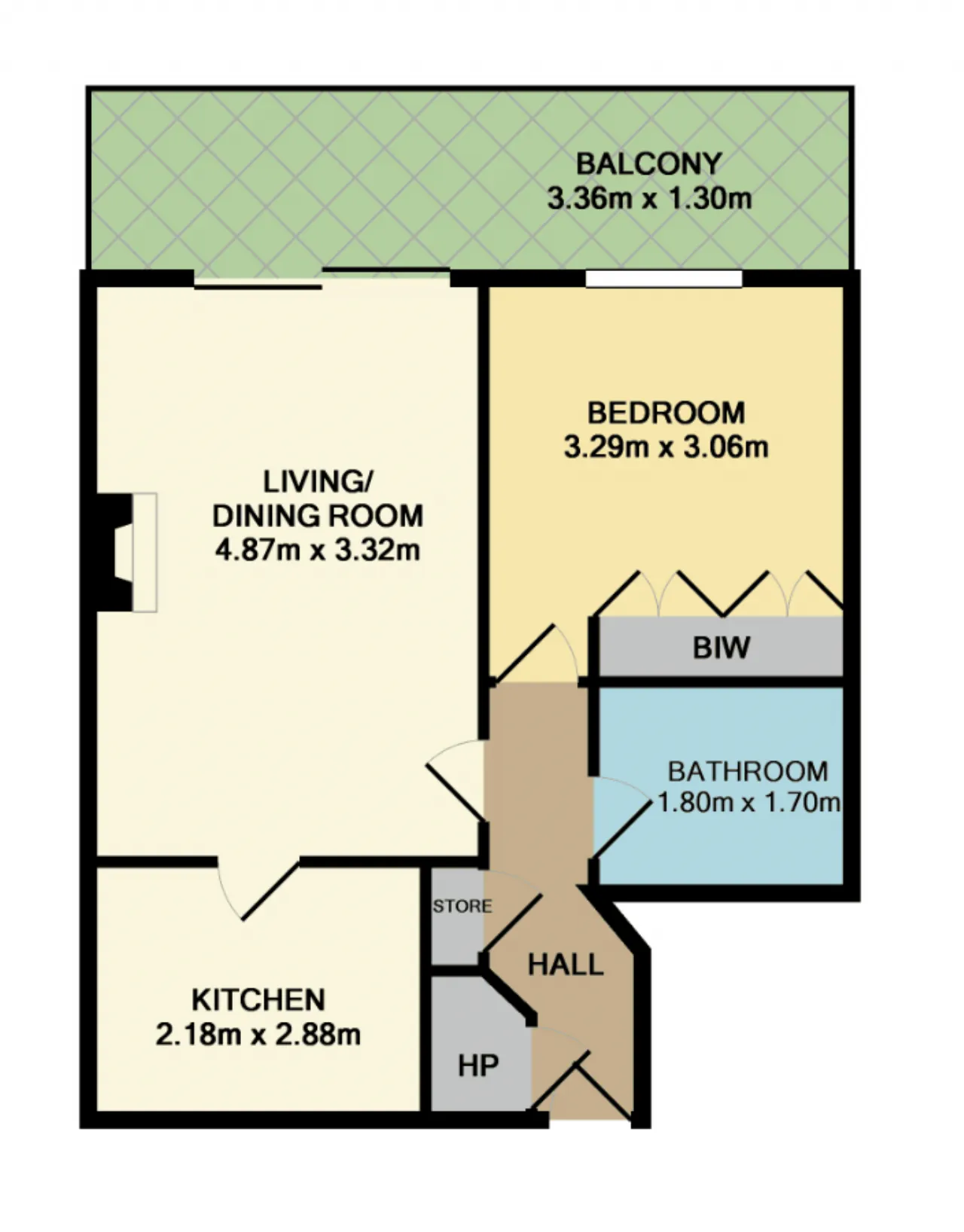 Balcony 3.36m x 1.30m A generous private balcony is accessed off the living/dining area and offers the perfect space to dine ‘al fresco’.