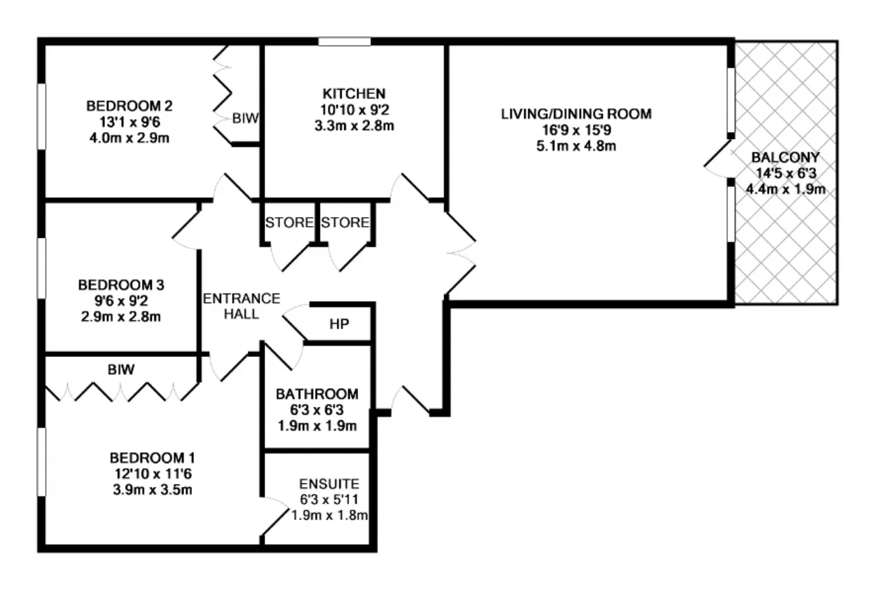 Bedroom 1 3.9m x 3.5m Double bedroom with spot lighting, built in wardrobes and window to the front.