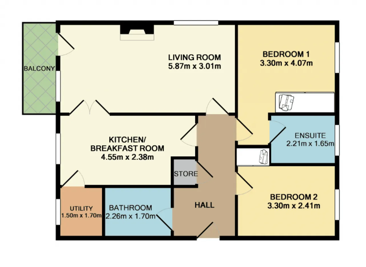 Bedroom 1 3.30m x 4.07m Double bedroom with built in wardrobes. Carpet floor.