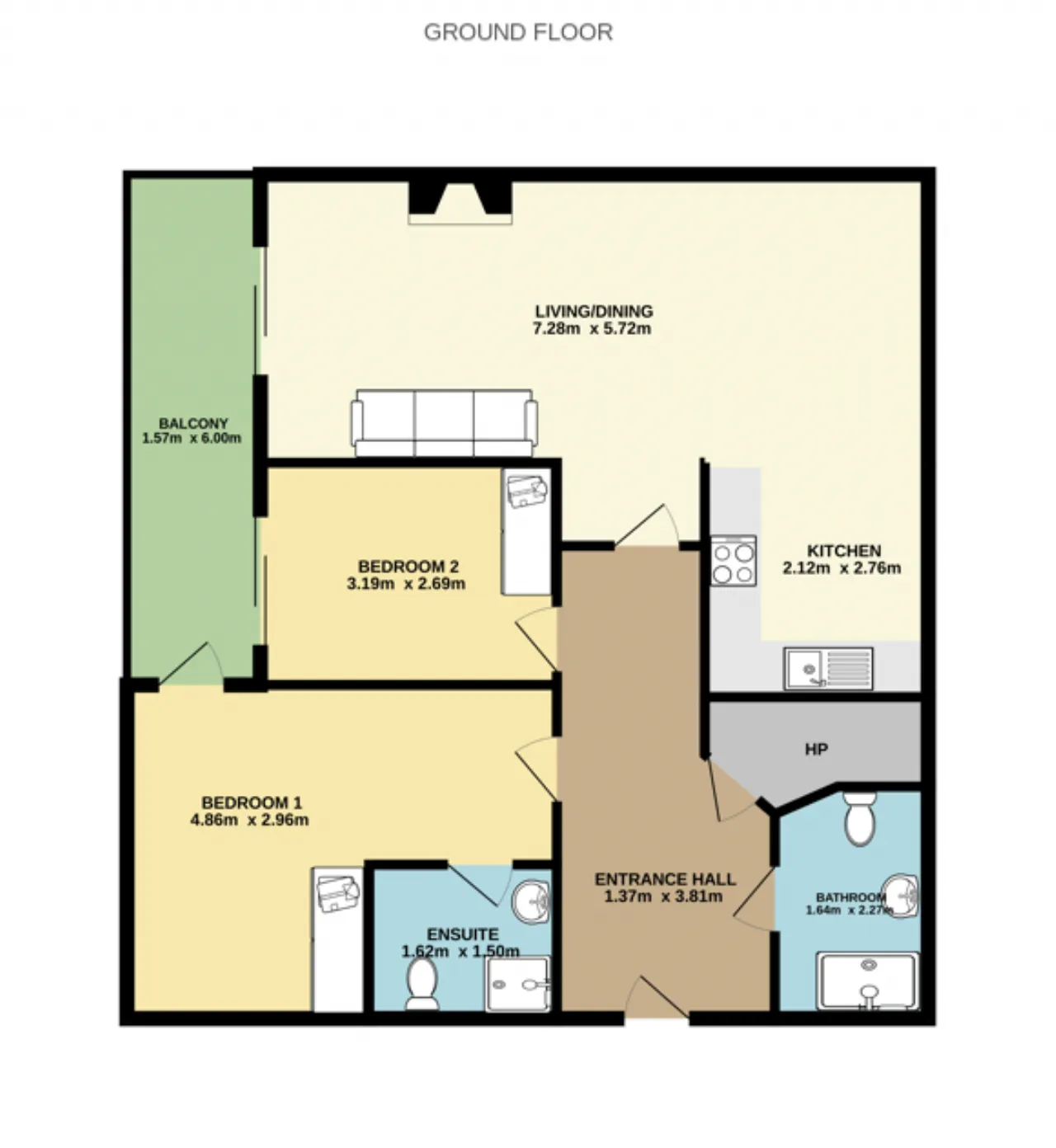 Bedroom 2 Generous second bedroom, also with built in wardrobes and direct access to the balconey.