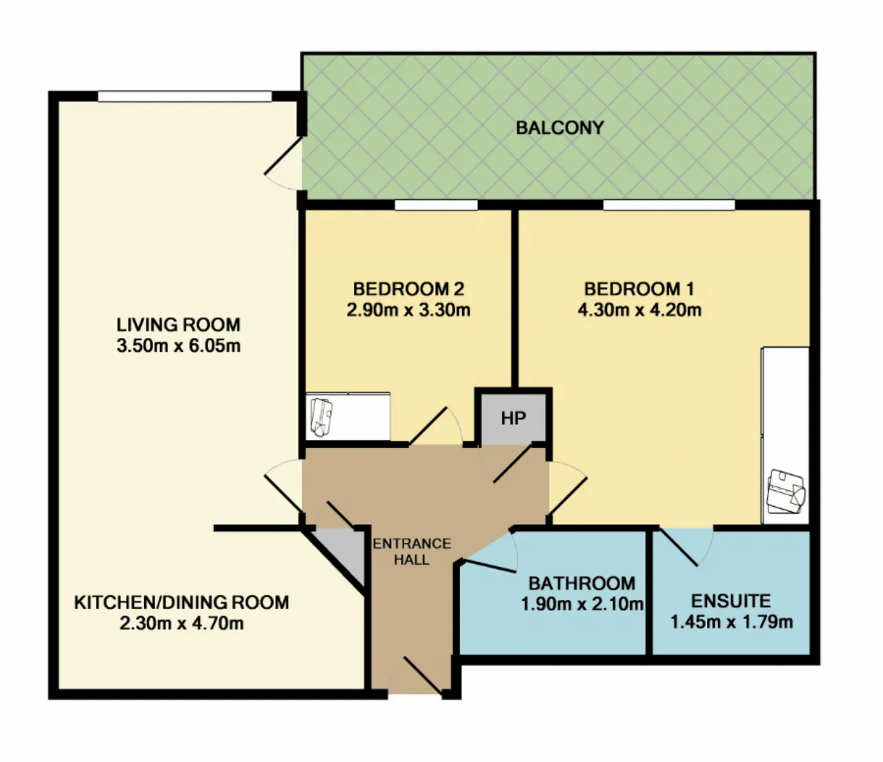 Bedroom 2 2.90m x 3.30m second double bedroom with semi-solid beech wood flooring built in wardrobes and window over-looking balcony.