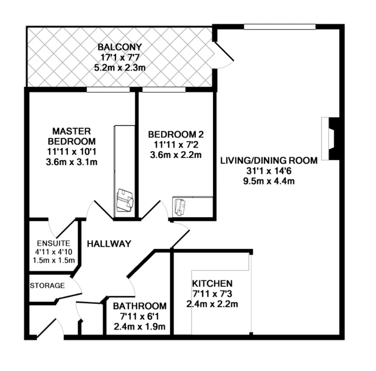 Bedroom 2 3.6m x 2.2m Generous double bedroom with carpet flooring and built in wardrobes.