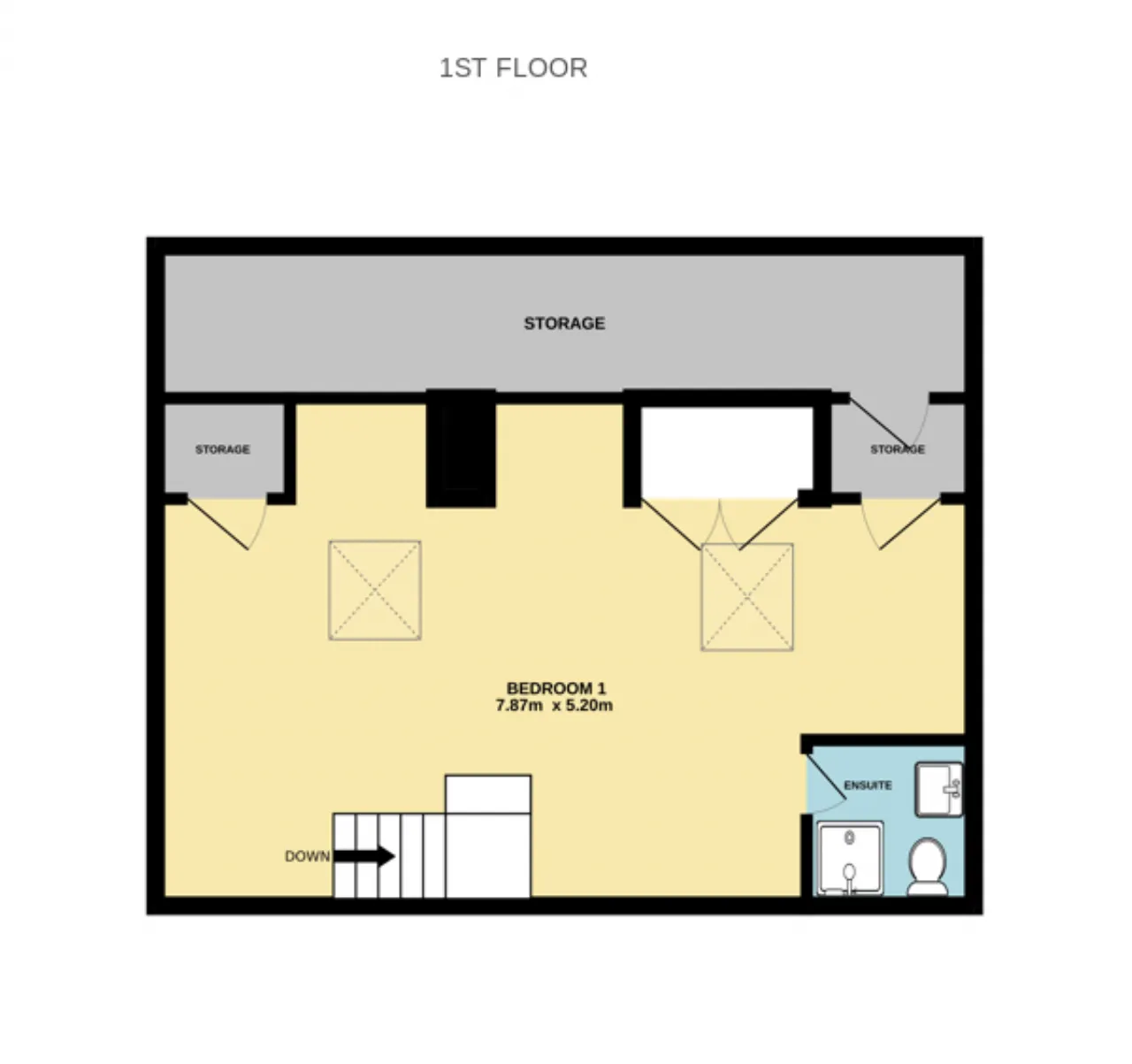 Bedroom 1 Situated on the top floor, with carpet flooring, the primary bedroom is a fantastic size with incredible storage space, to include fitted wardrobes as well as a walk-in storage presses. Overhead skylights provide an abundance of natural light.