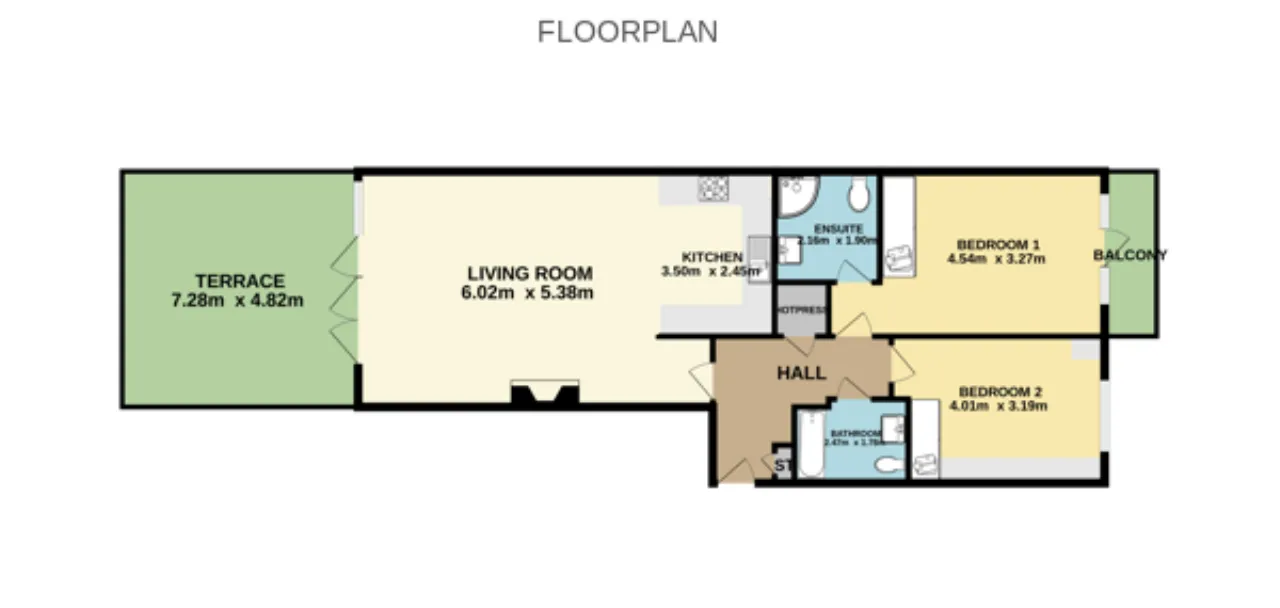 Main Bedroom 4.50m x 3.40m Is the main suite, very generously proportioned with built in wardrobes. Double doors lead to rear balcony.