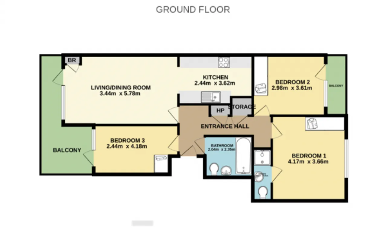 Bedroom 3 3.967m x 2.443m A third, double bedroom with solid, oak flooring and a fitted wardrobe. Enjoys access to the private, west facing balcony.
