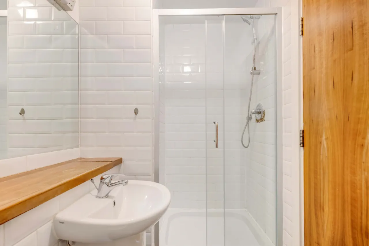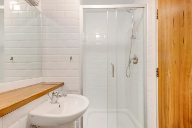 En-Suite 2.45m x 1.50m Part tiled, shower, w.c., wash hand basin.