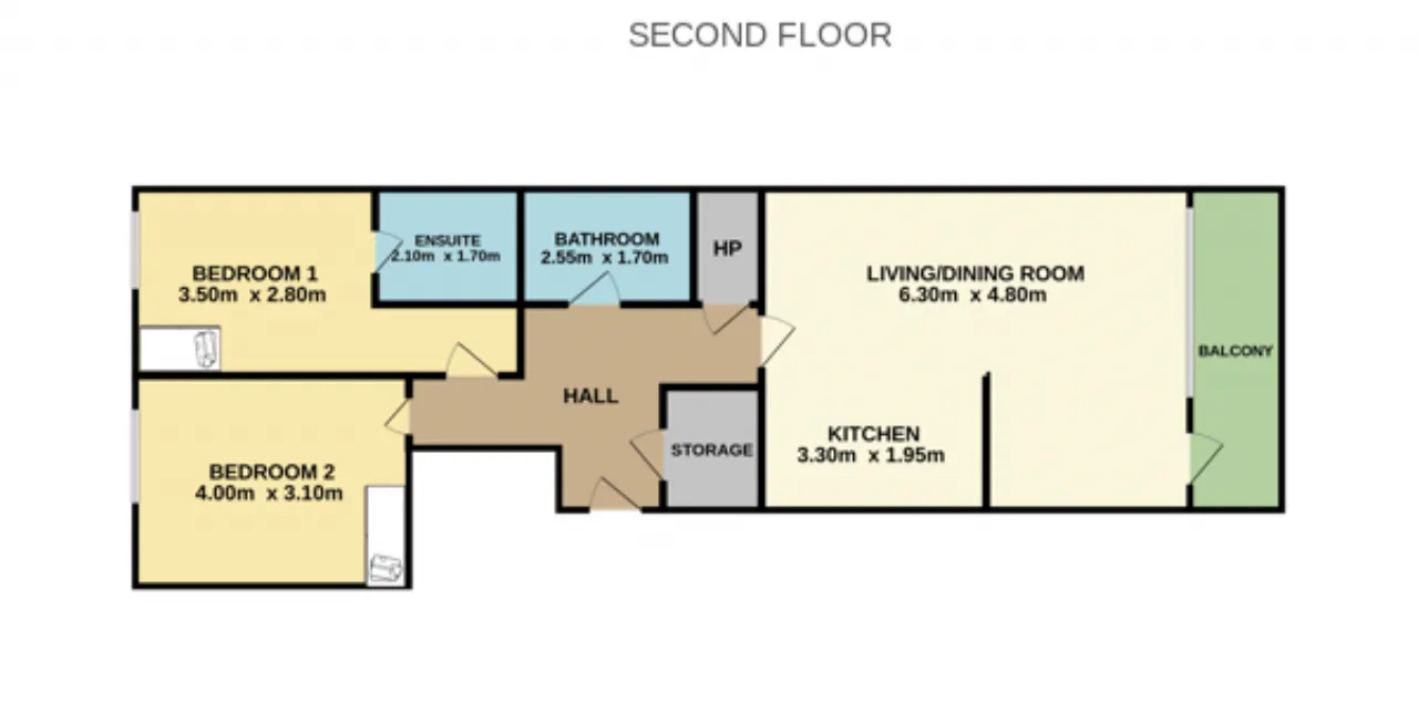 Bedroom 2 3.1m x 4.0m Generous double bedroom featuring a large full-height window, built-in wardrobe, complete with semi-solid oak timber floors.
